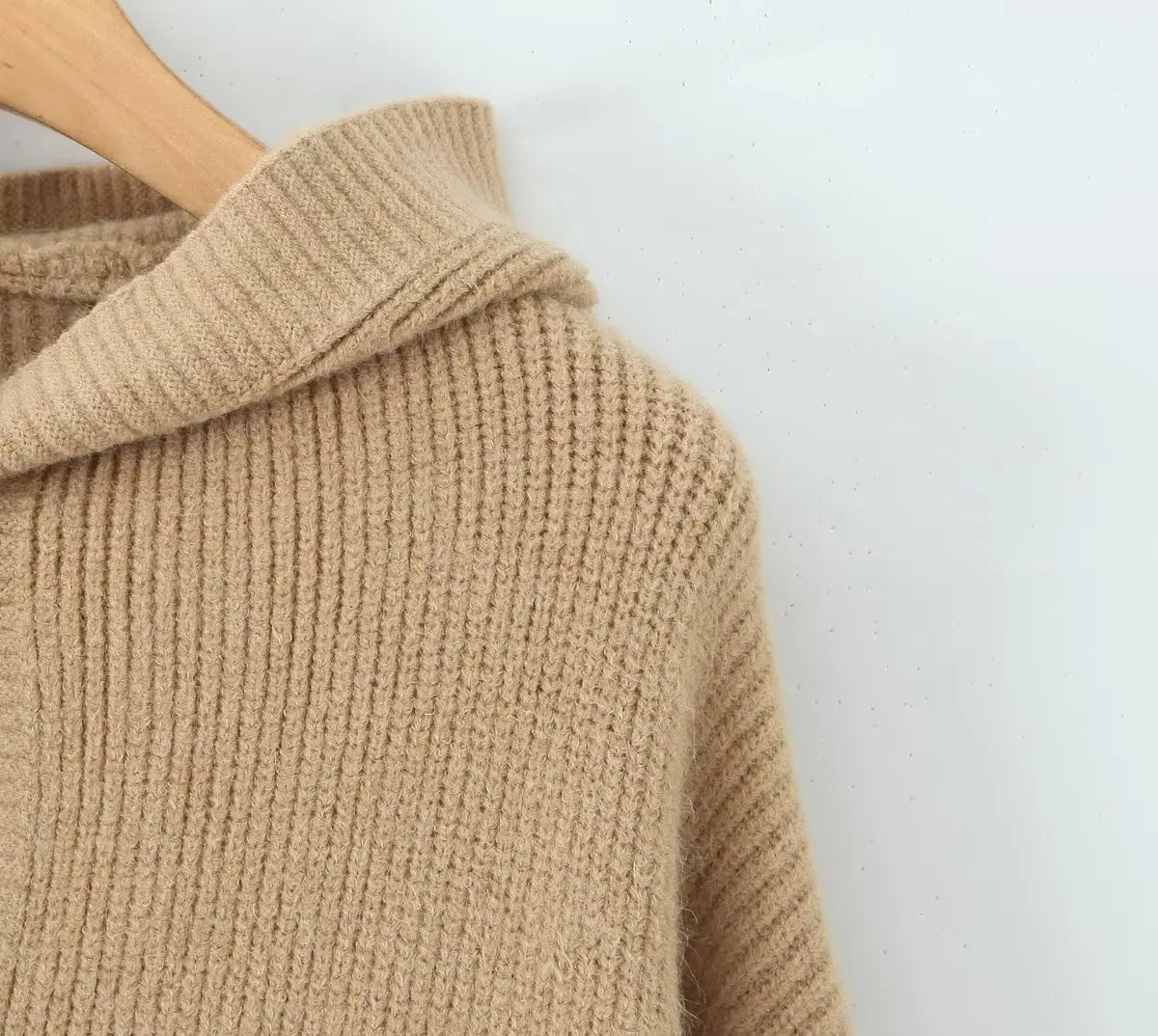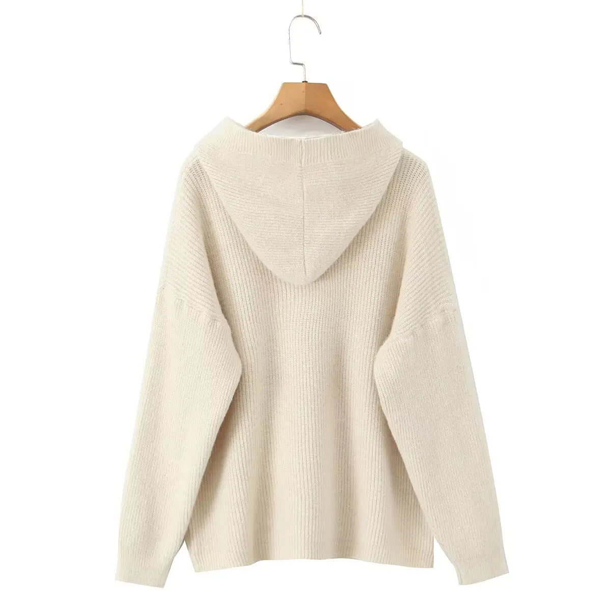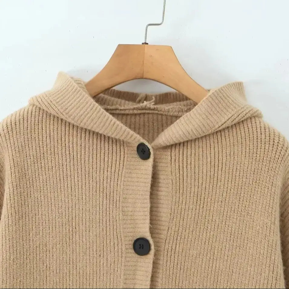 Hooded Cardigan Sweater | New Solid Color Hooded Knitted Cardigan | Retro Long Sleeve