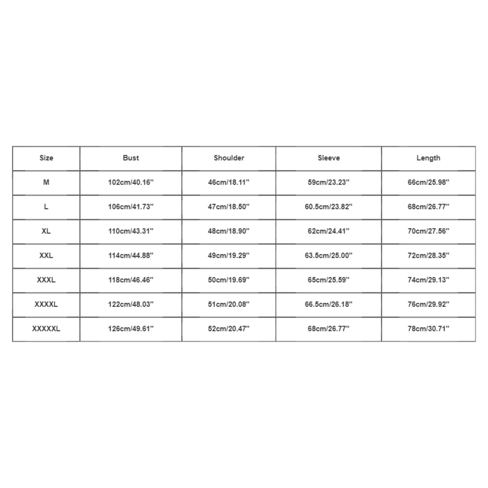 Size:XXXXXL | Bust:126cm/49.61'' | Shoulder:52cm/20.47'' | Sleeve:68cm/26.77'' | Length:78cm/30.71'' |