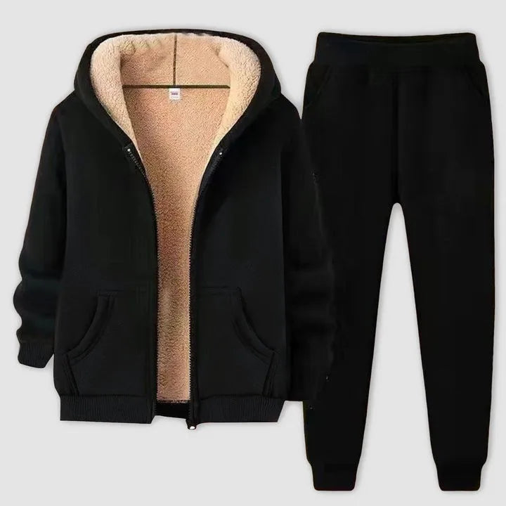 Hooded Winter Suit – Thick Zipper Cardigan & Thermal Pants Set