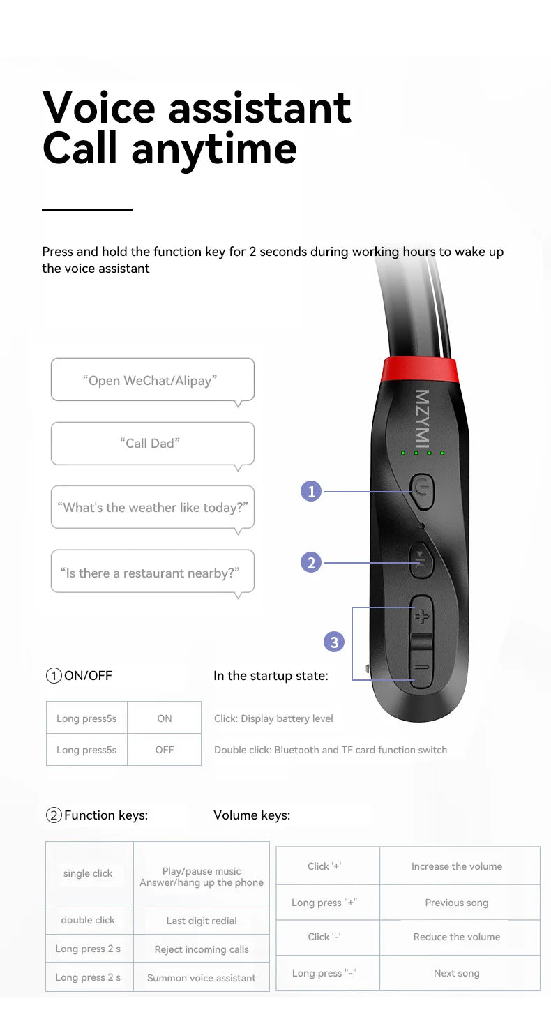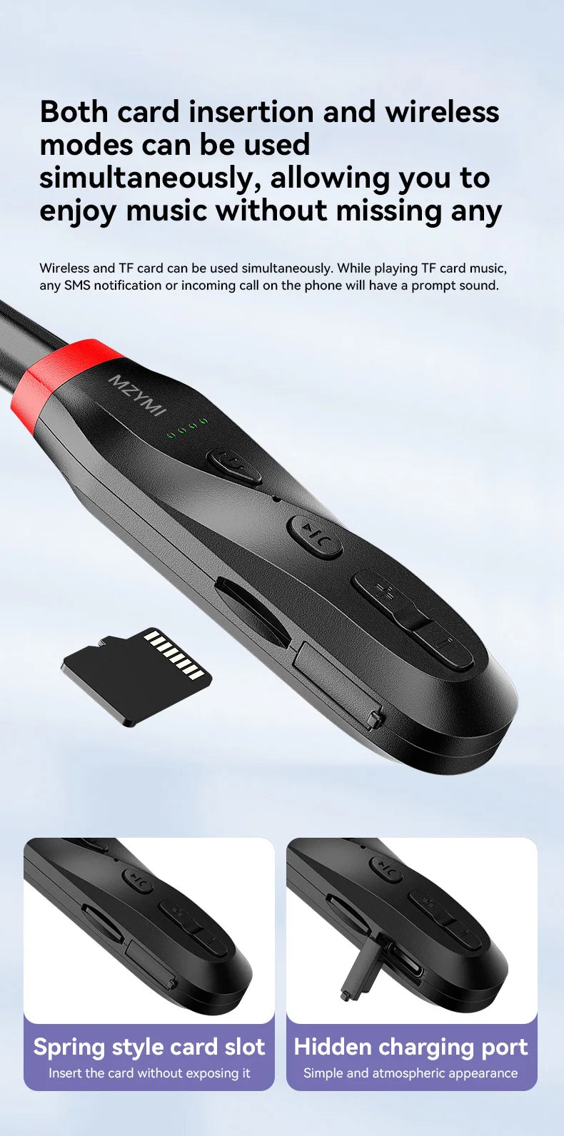 Continuous playback for 100 hours Support TF card insertion and wireless simultaneous use Four grid battery display Type-C fast charging