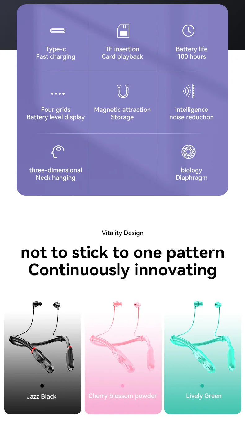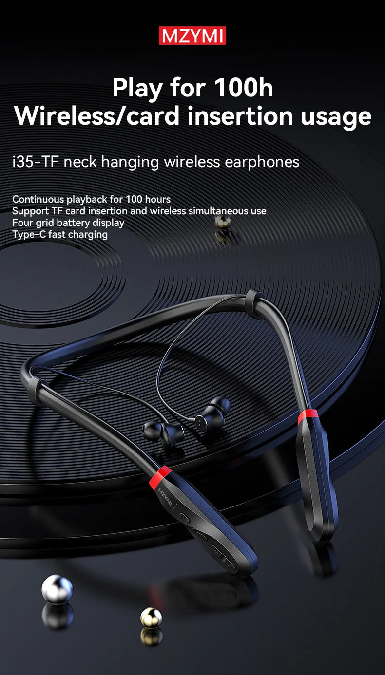MZYMI I35 Wireless Earphone Bluetooth5.1 Neckband In Ear Headphone 9D HiFi Stereo Sport Running Headset For Android iOS
