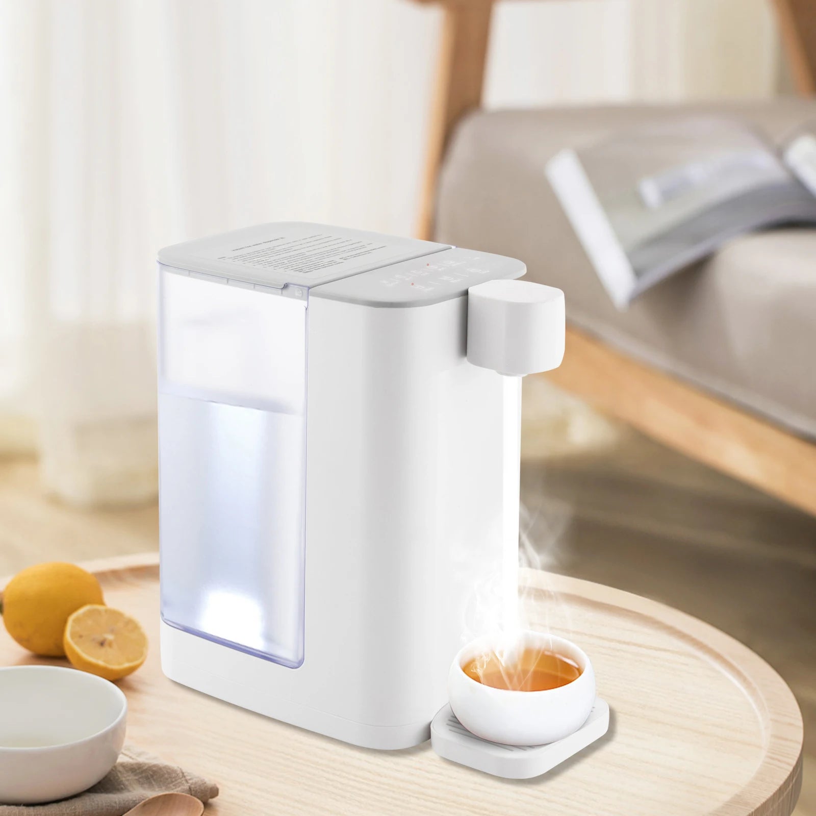 This small white instant hot water dispenser is very convenient and suitable for home or office use. It can heat water quickly, so you can drink hot water at any time and improve your quality of life. Whether it is making tea, coffee, or hot milk, you can easily get satisfactory results from this machine, providing comfort and convenience.