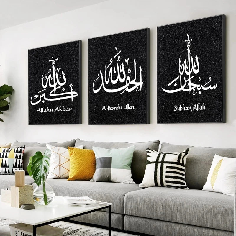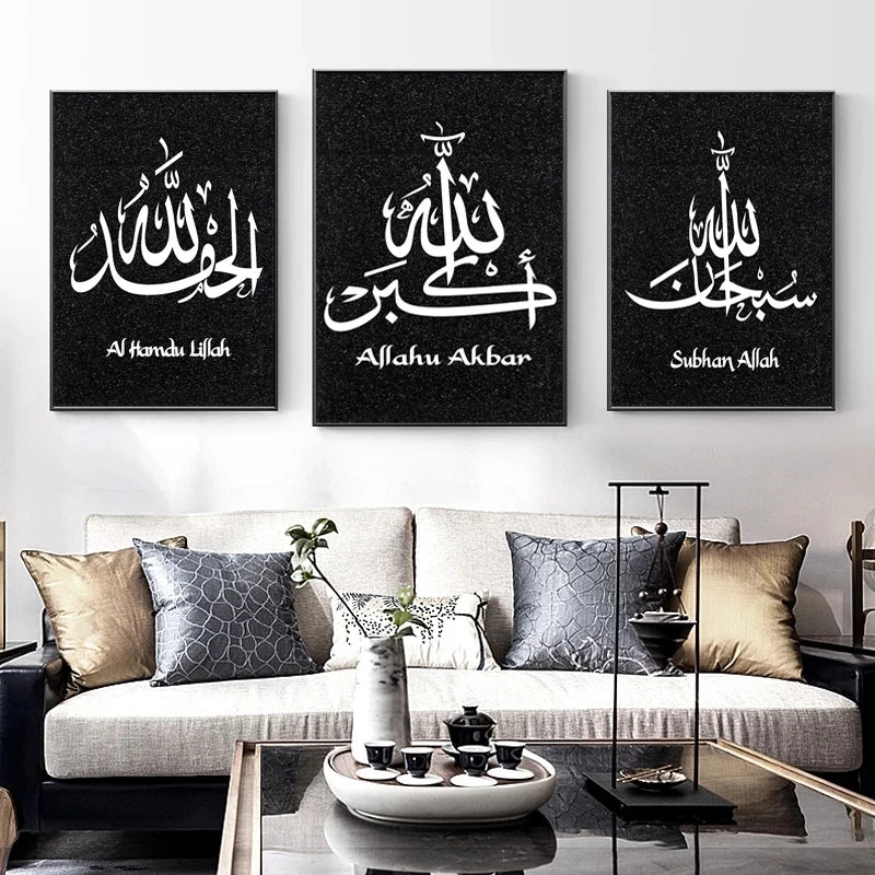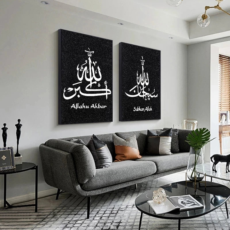 Black White Allah Islamic Calligraphy Wall Art and Painting Canvas
