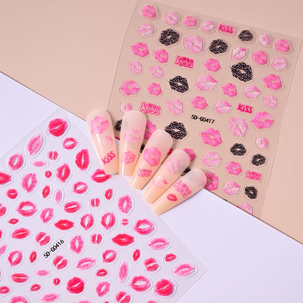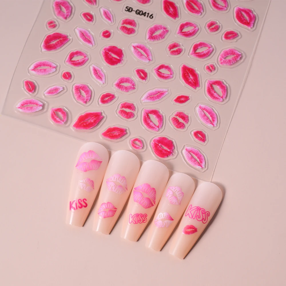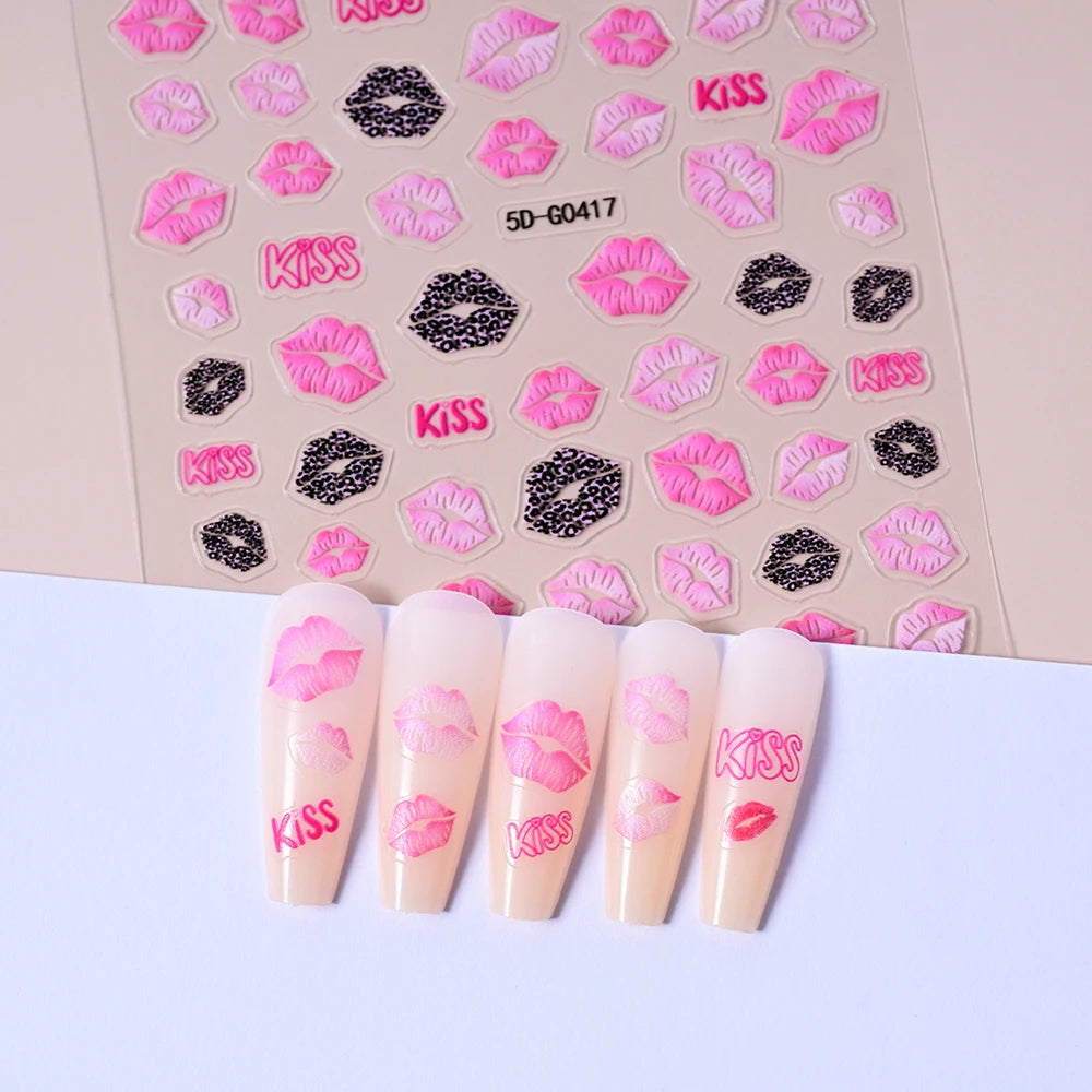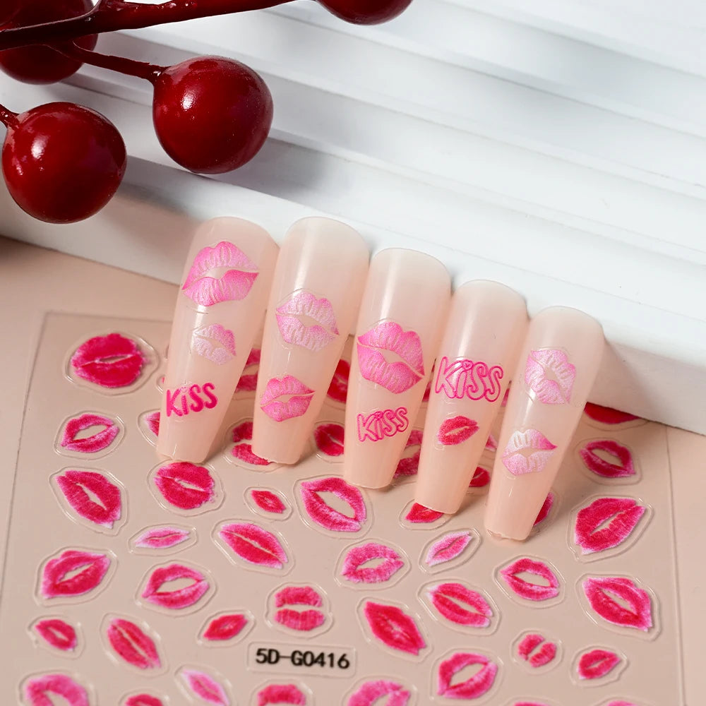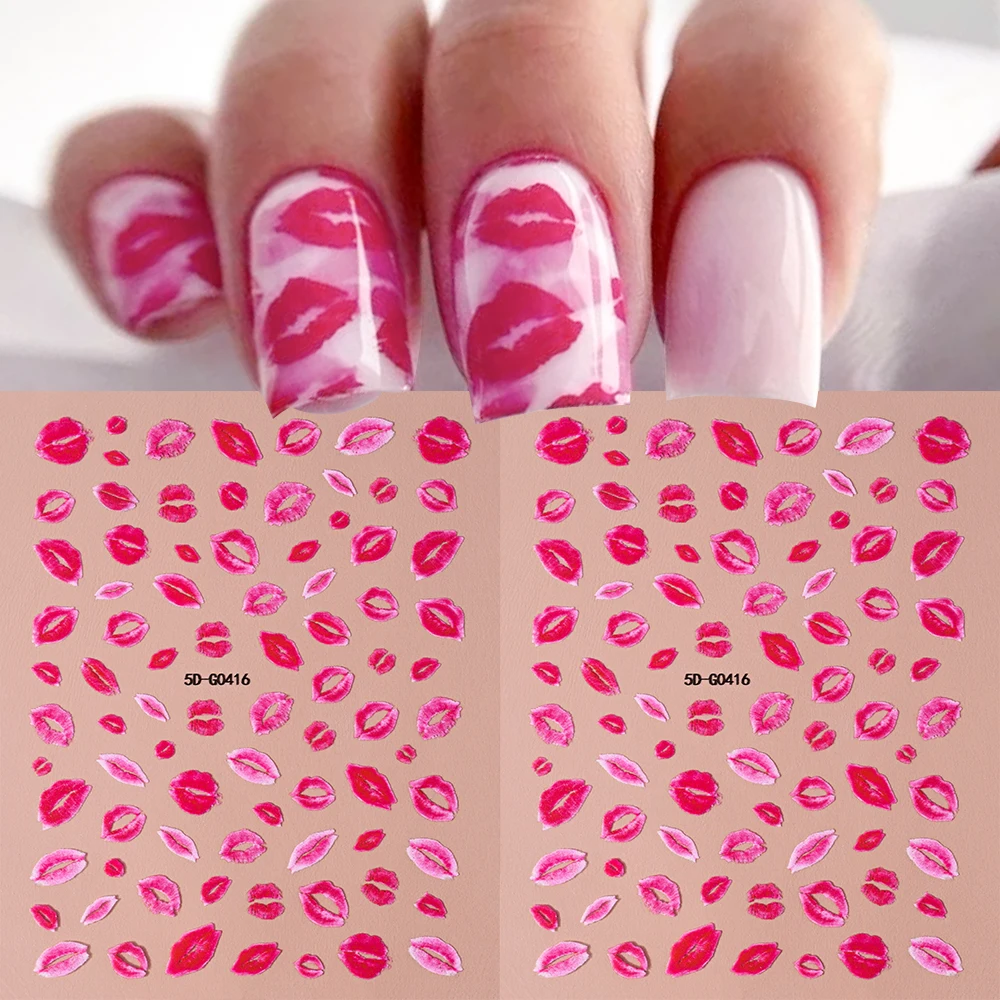 1sheet 5D Sexy Red Lips Nail Decal Stickers KISS Love Heart Valentine's Day Self-adhesive Nail Slider DIY Romantic Nail Decor