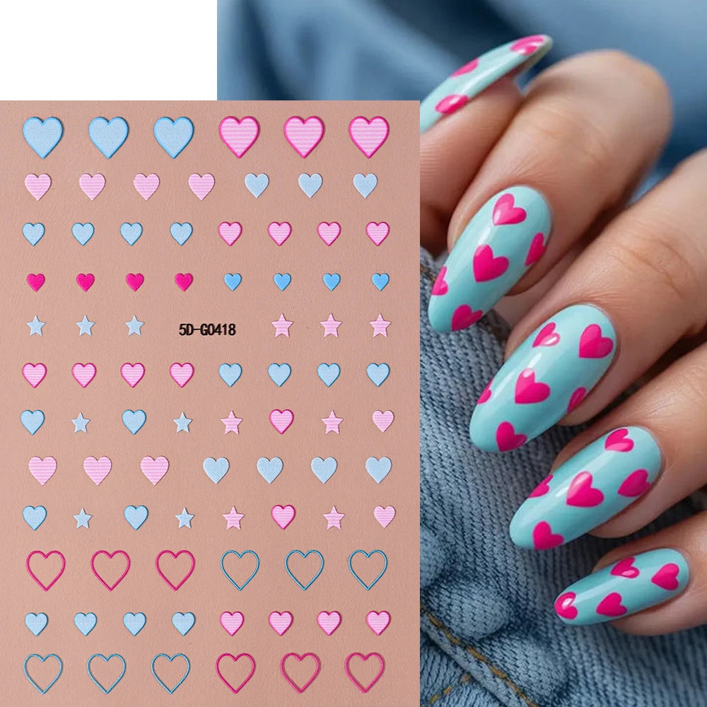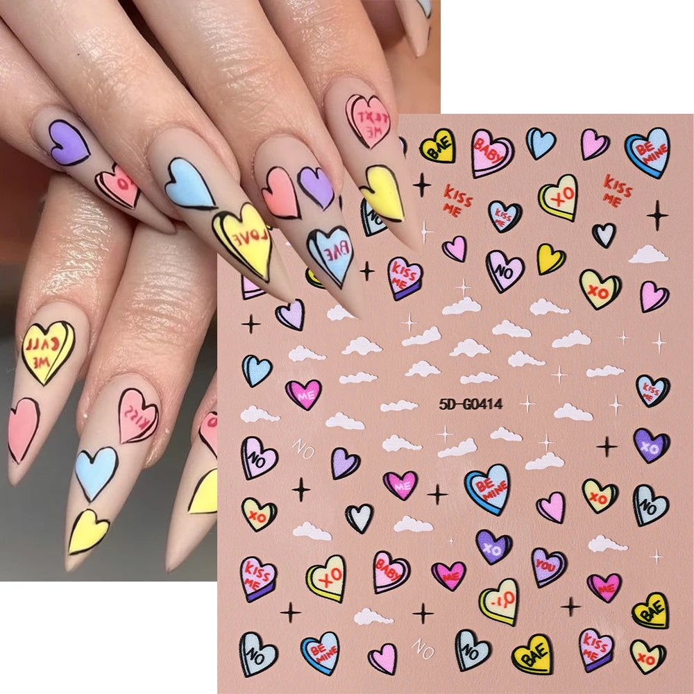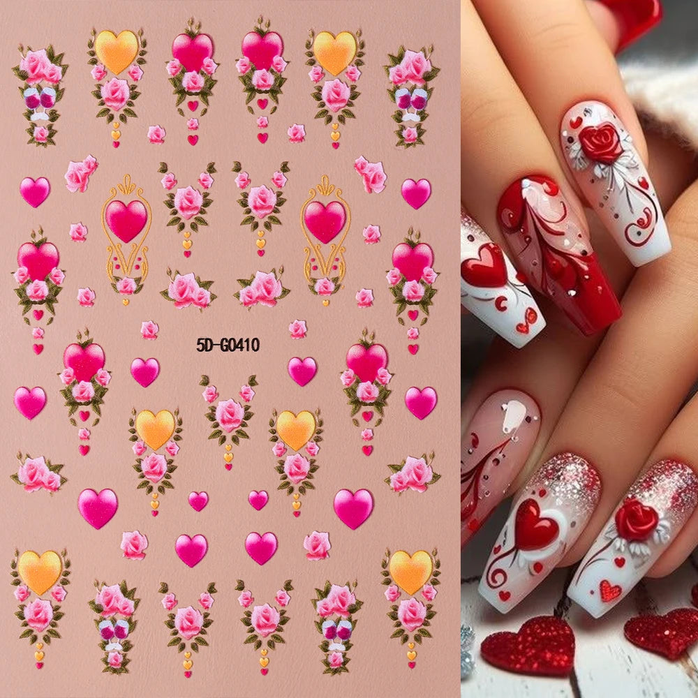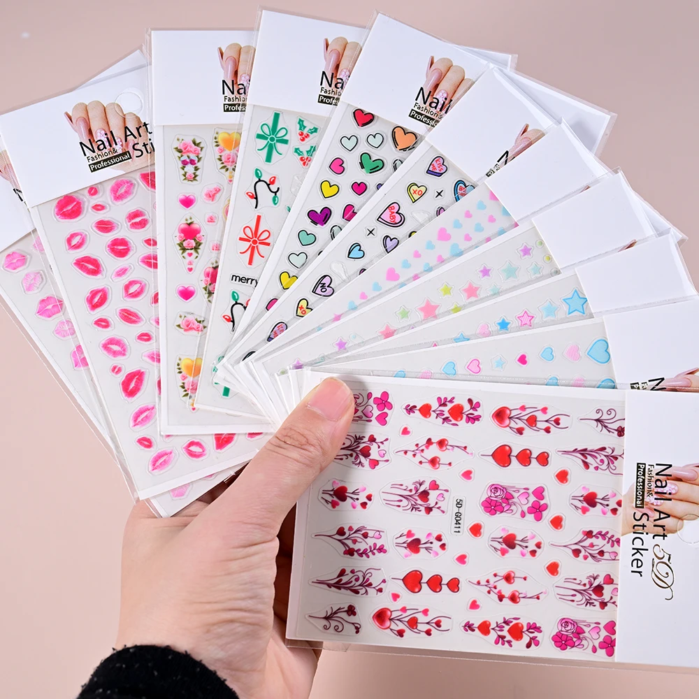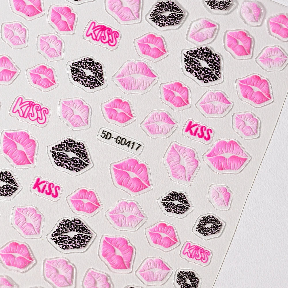 1sheet 5D Sexy Red Lips Nail Decal Stickers KISS Love Heart Valentine's Day Self-adhesive Nail Slider DIY Romantic Nail Decor