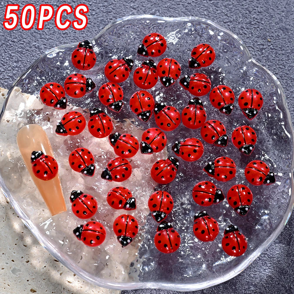 50 Ladybug Manicure | 8*10mm Cute Insect Flatback Ladybug Nail Art Decorations DIY Craft