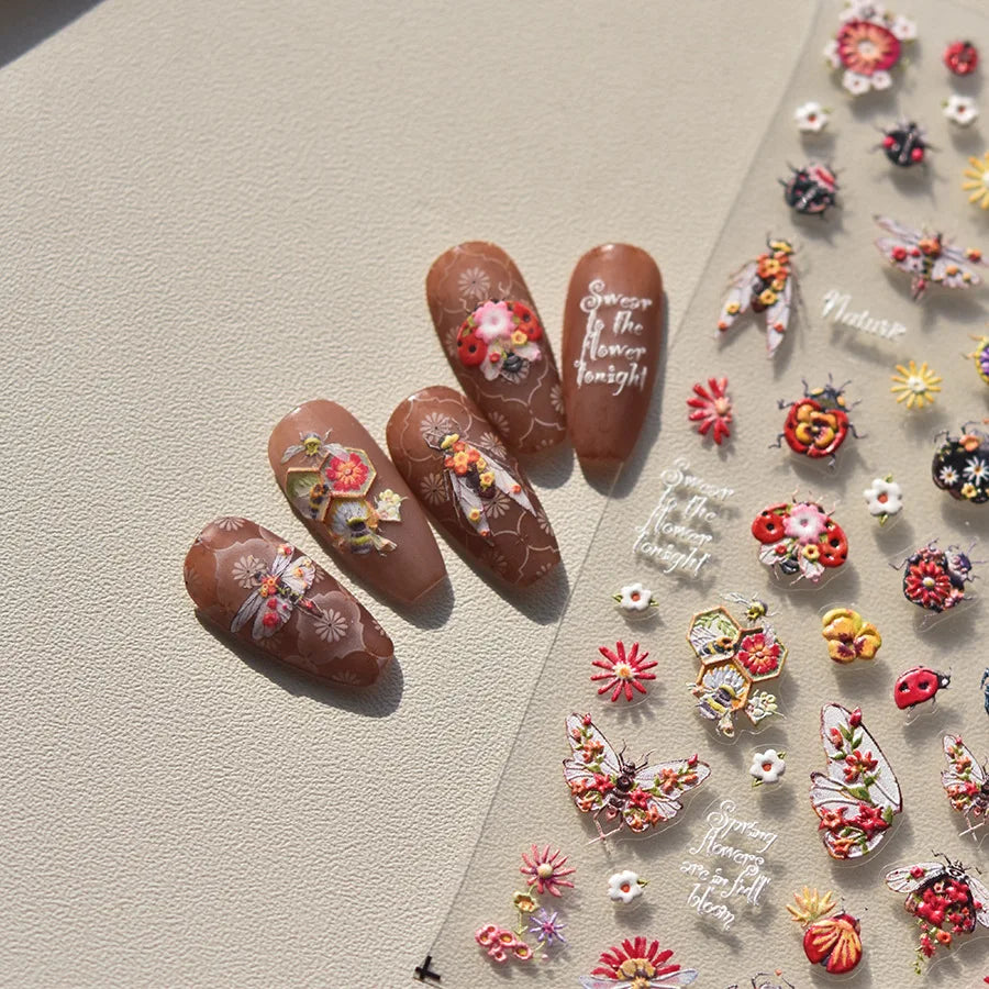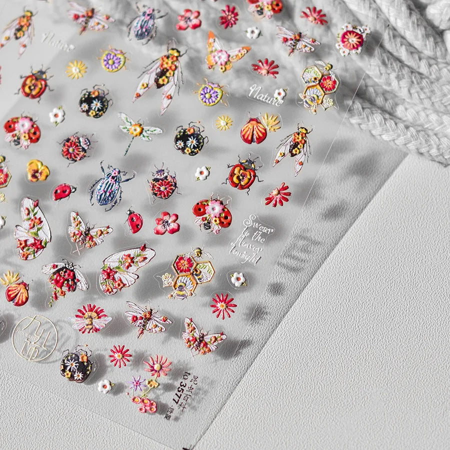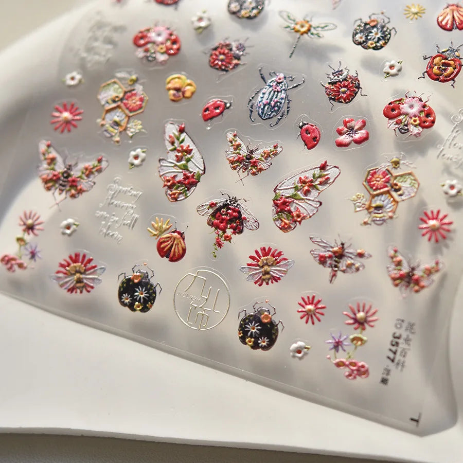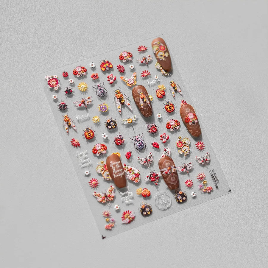 5D Relief Beautiful Bright-coloured Ladybug Nail Stickers
