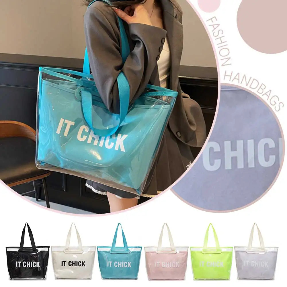 PVC Transparent Shoulder Bag Large Capacity Clear Jelly Bag Water Proof Multifunctional Tote Bag Shopping Work Date Bag