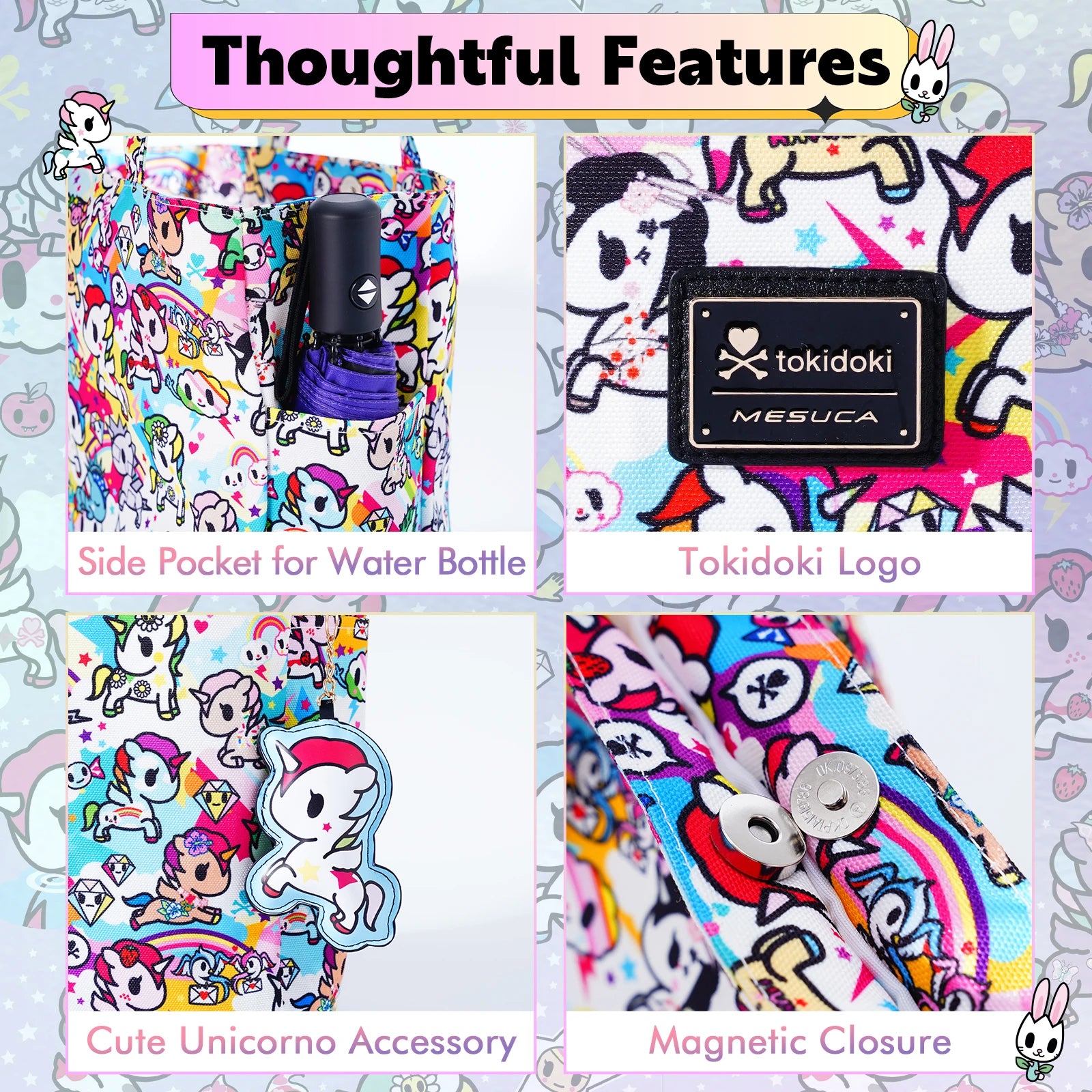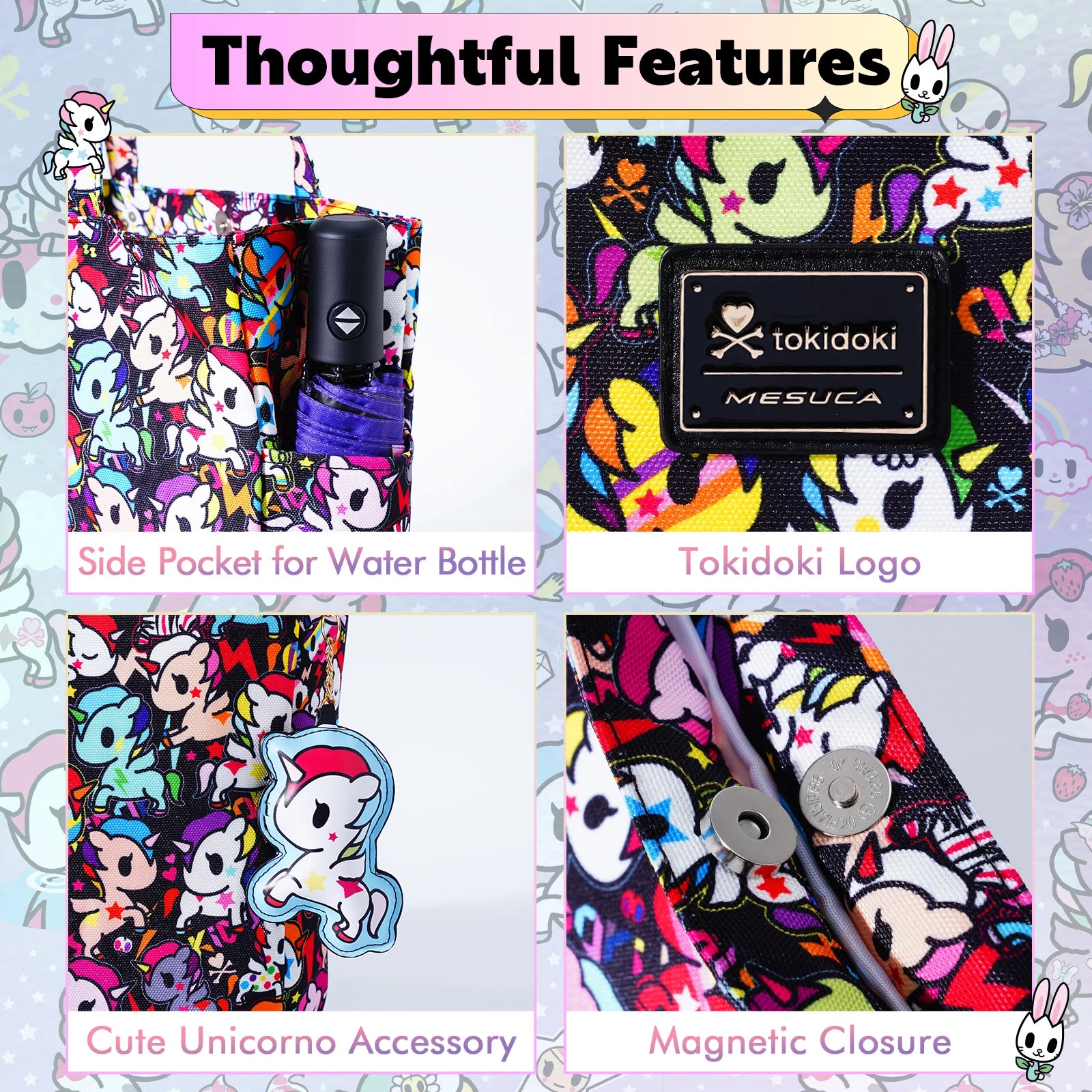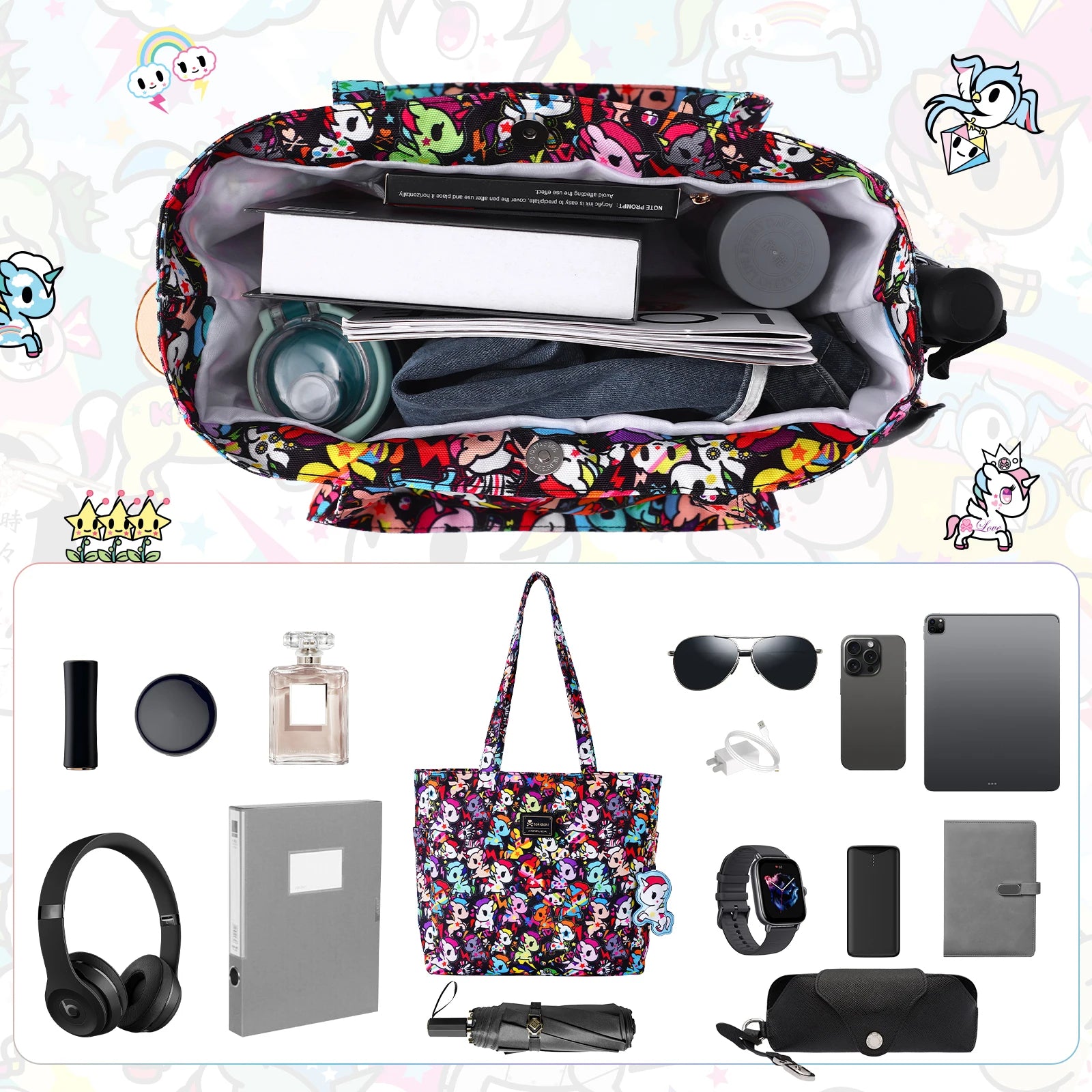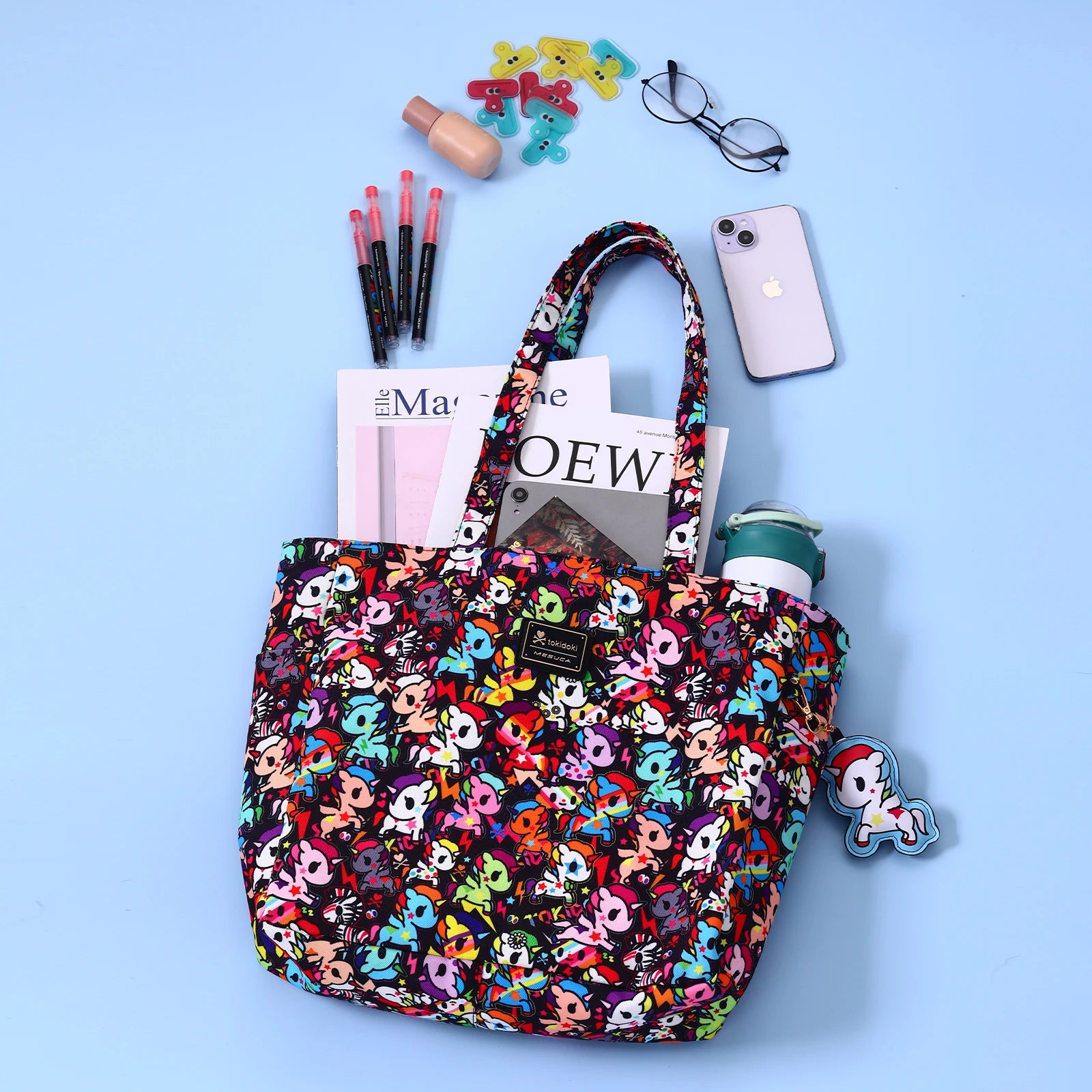 Large Tote Bag with Unicorno Keychain | Lightweight Shoulder Bag