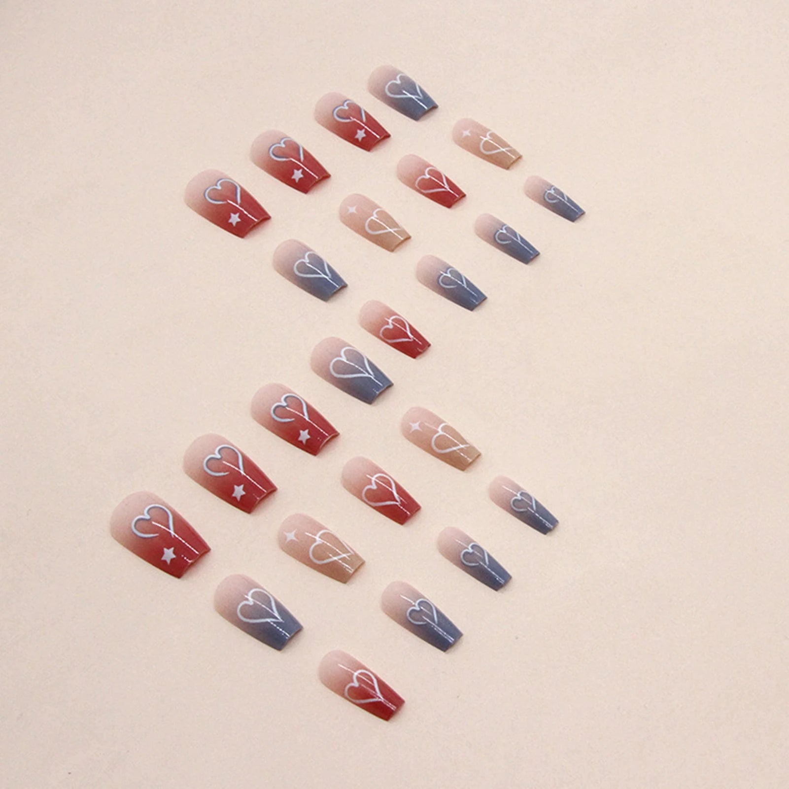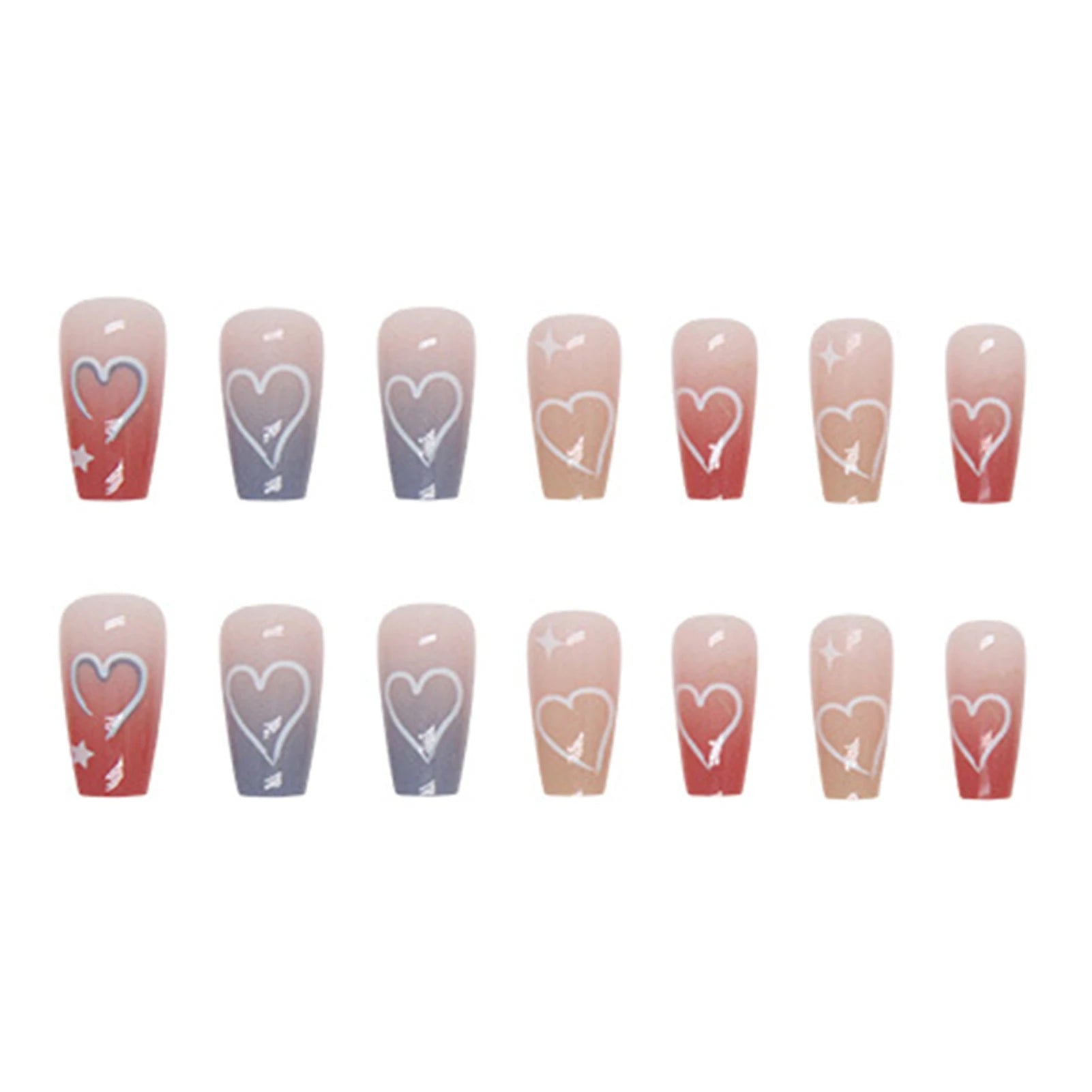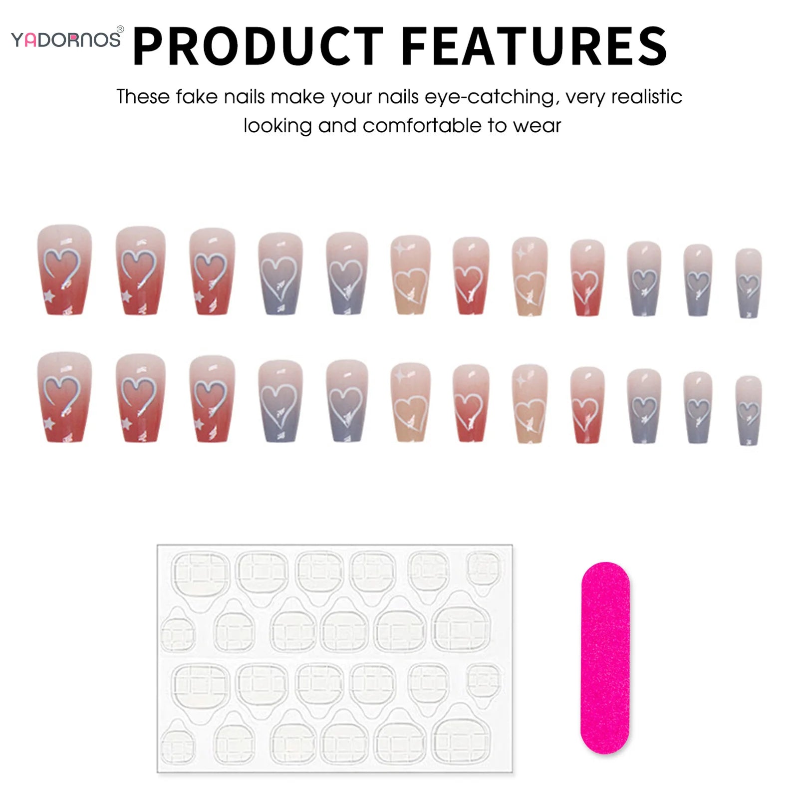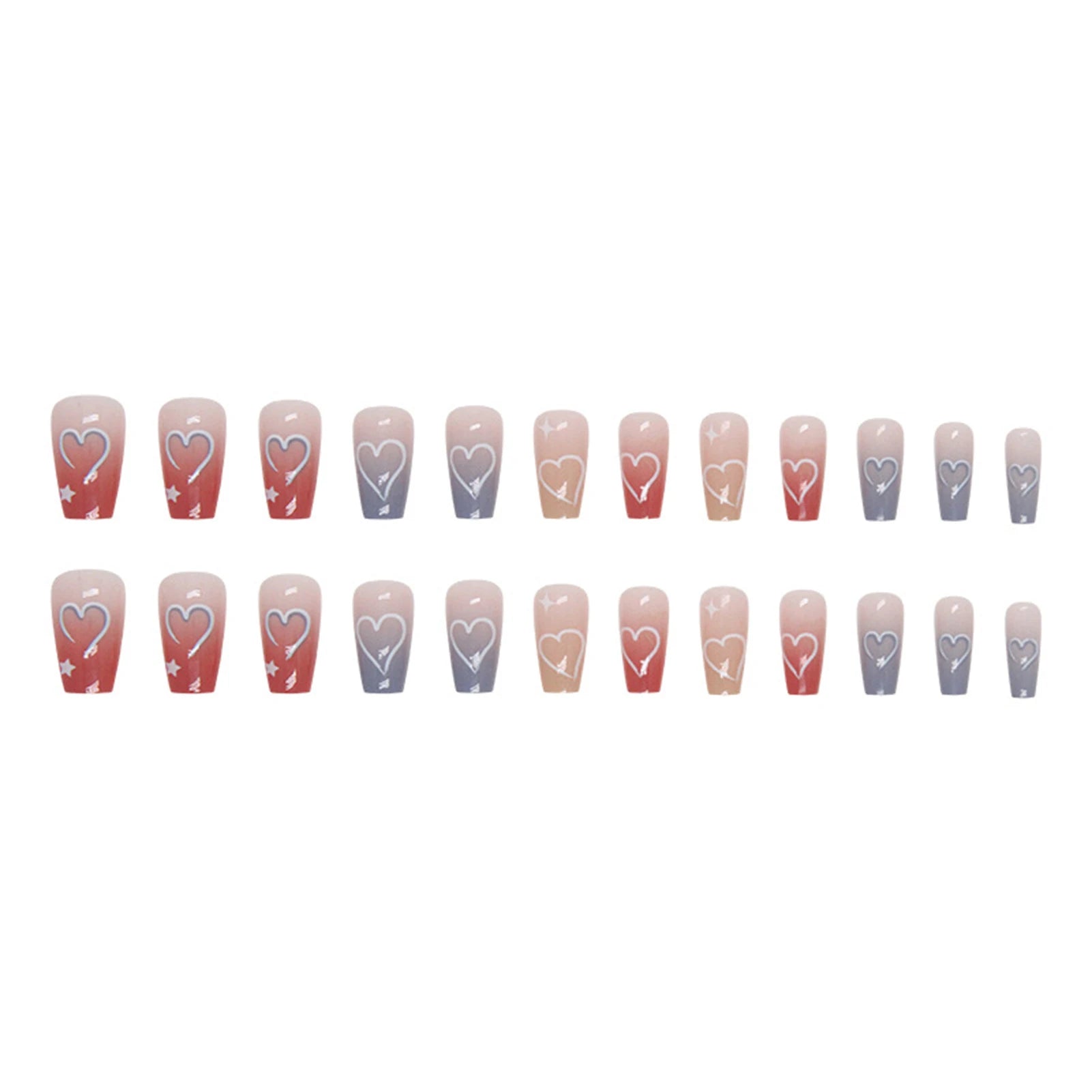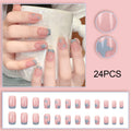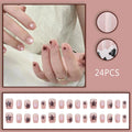 24 Light Pink Nails Natural | Love Printed Fake Nail Tips for Girl | Korean Cute False Nails