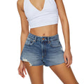 Women's Ripped Denim Shorts Stylish Blue/Black Mid-Rise Jean Shorts for Summer& Spring