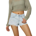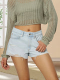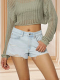Trendy Light Wash Distressed Denim Shorts with Frayed Hem