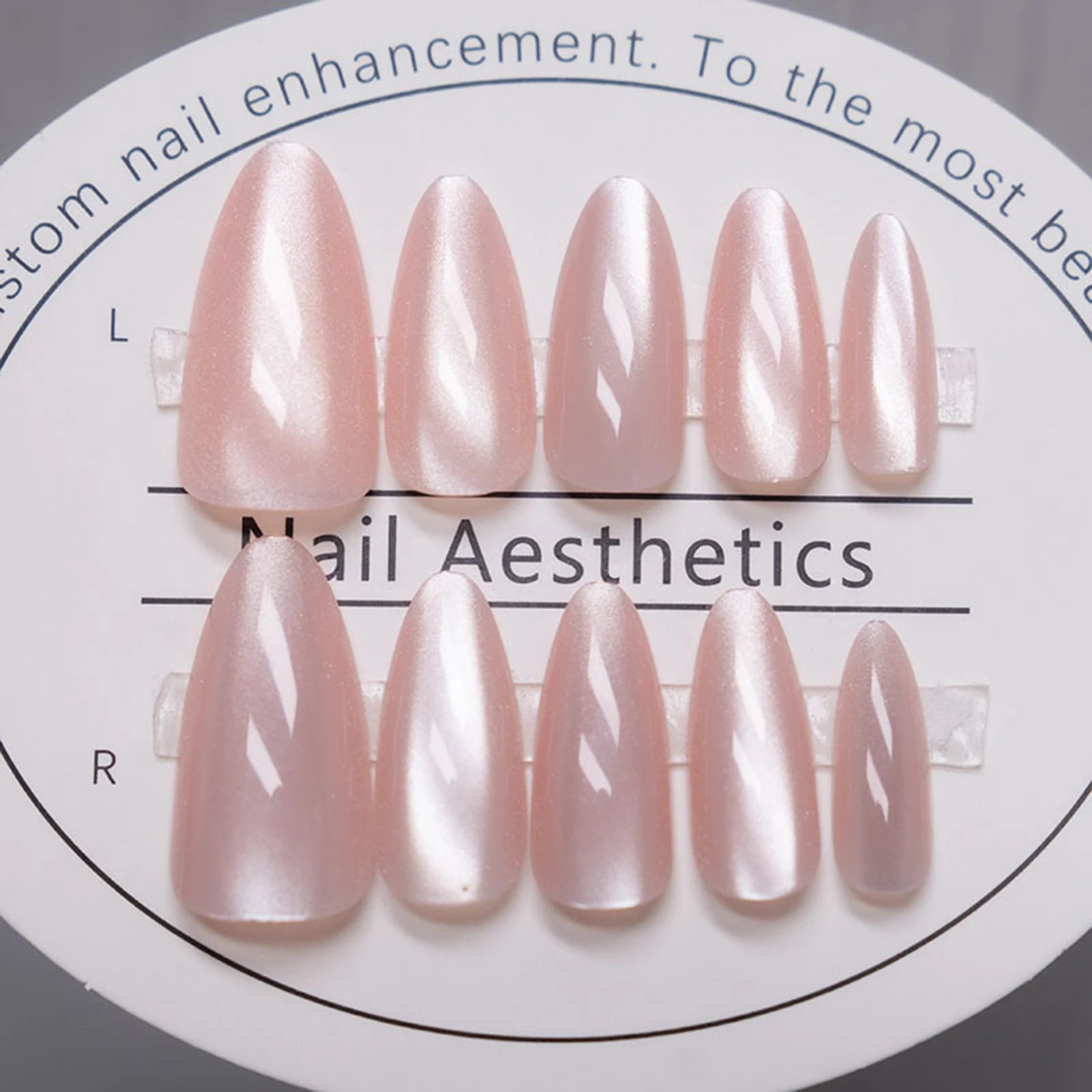 24 Long Almond Cat's Eye Nails | Glitter Aurora Artificial Fake Nails | Press On Round Nail