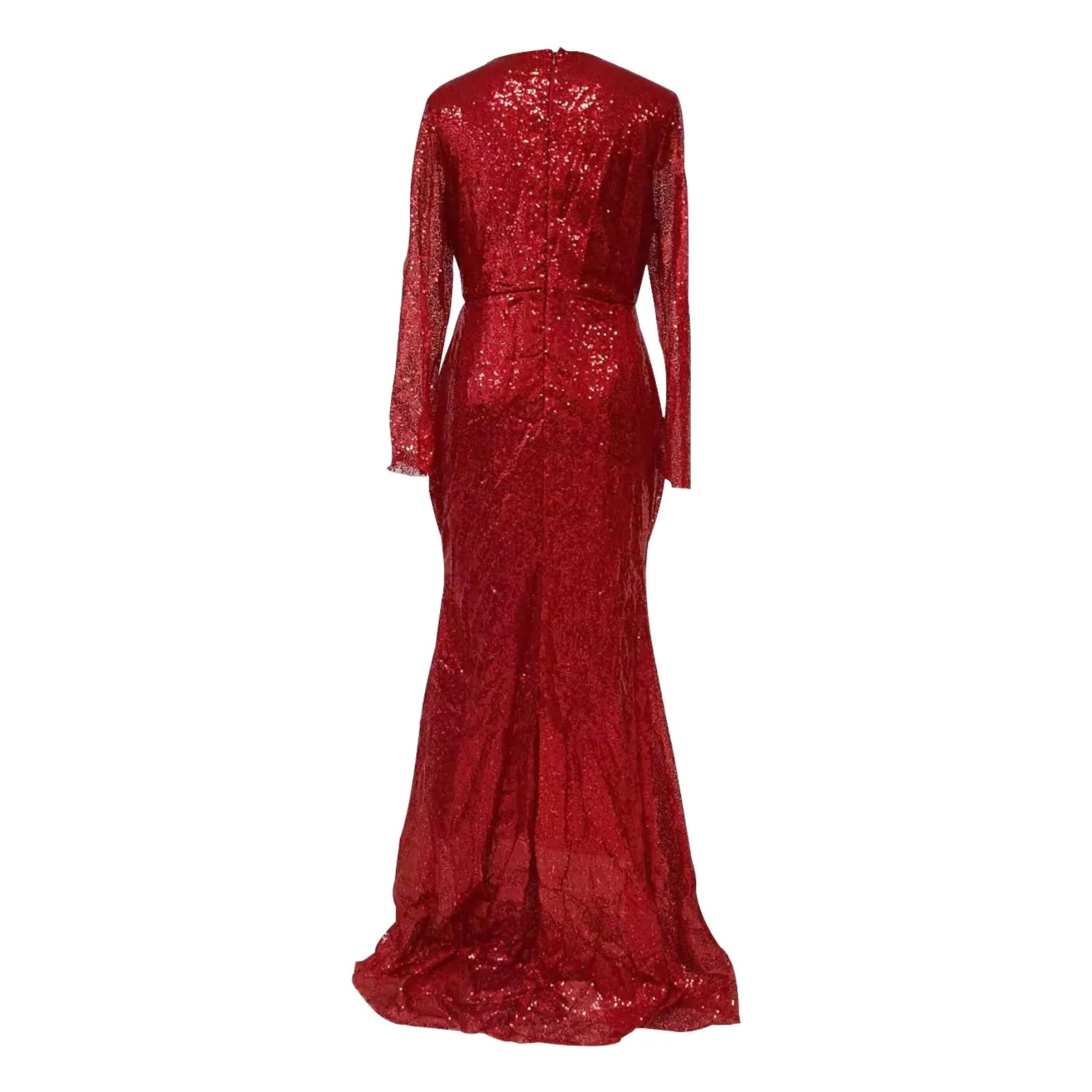 Women's Floor Length Evening Dress With Slit Solid Sequins