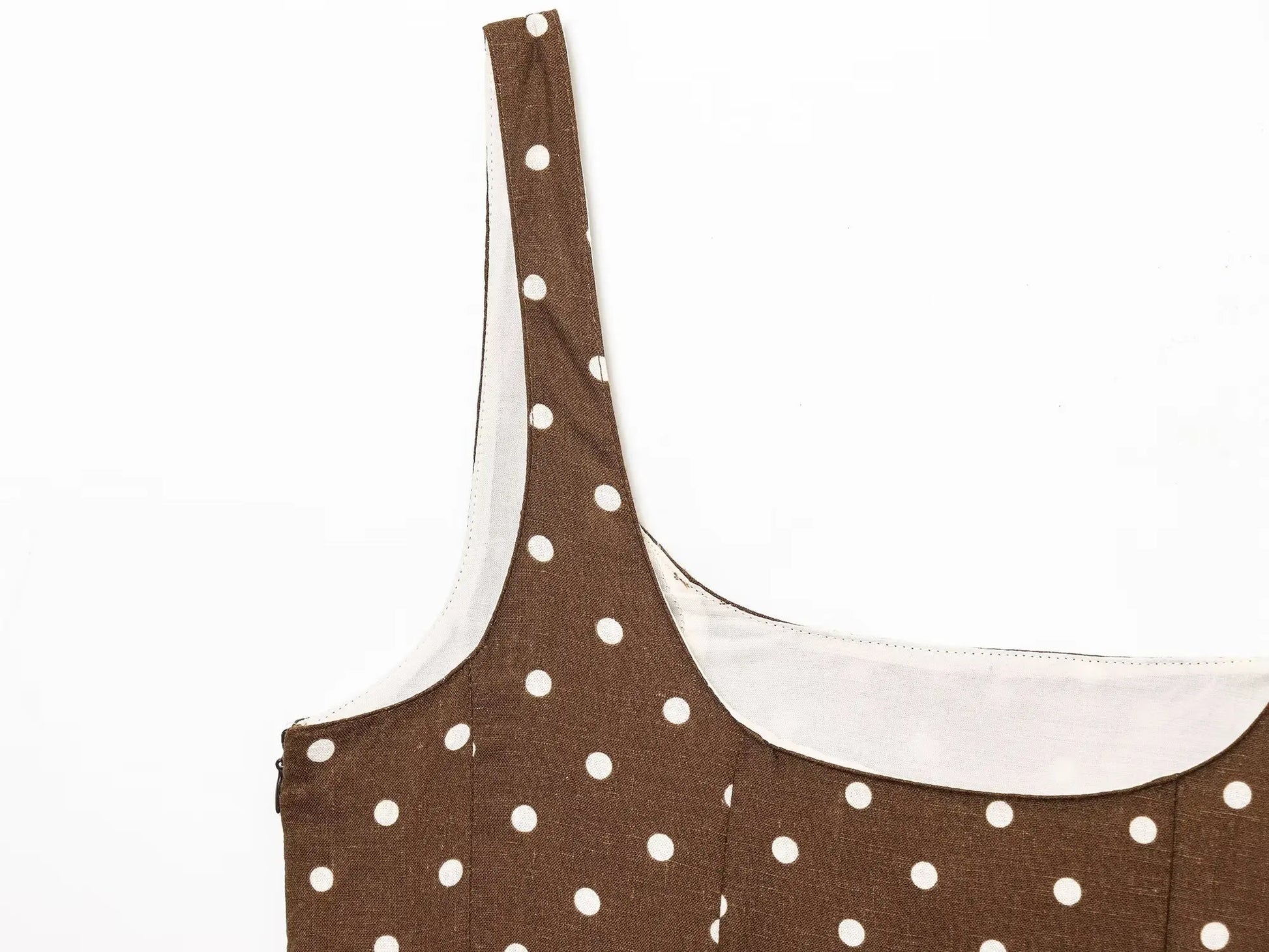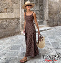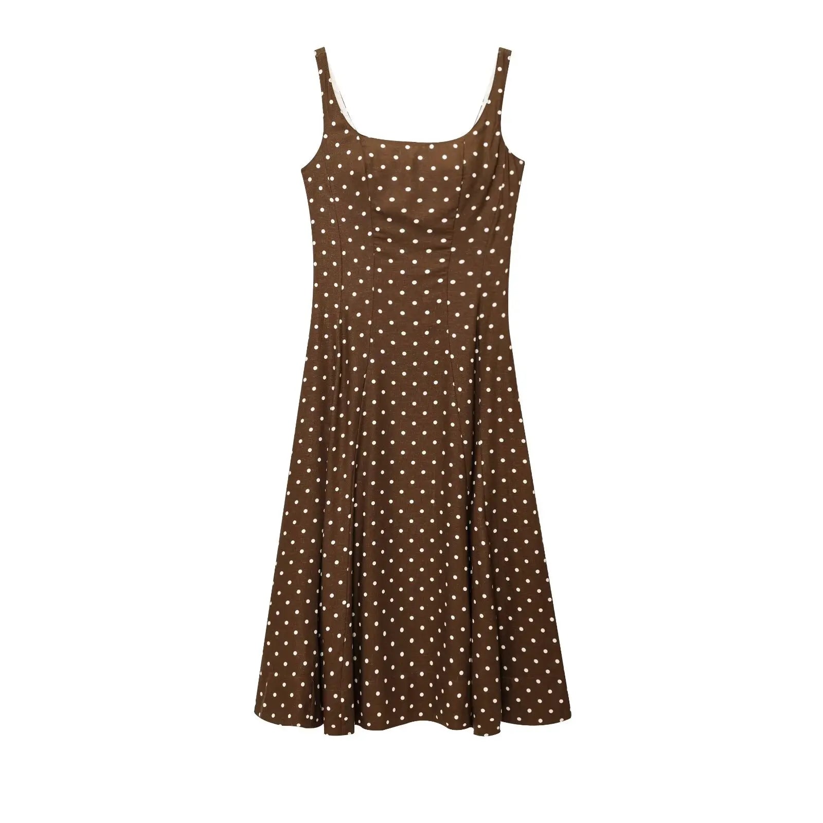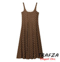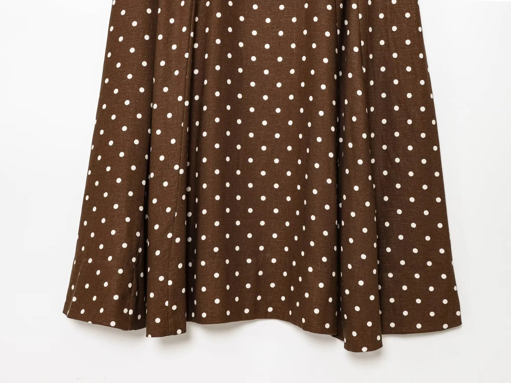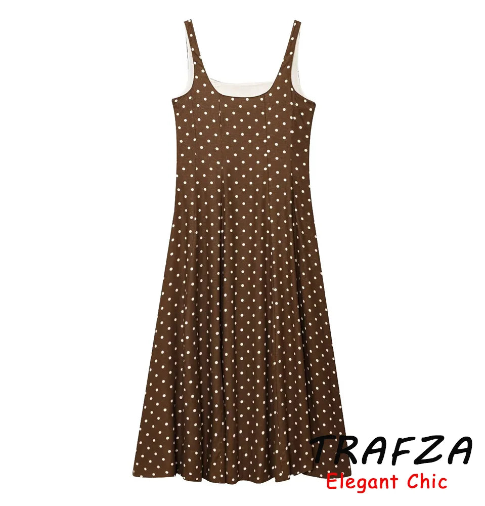 TRAFZA Vintage Casual Polka Dot Dress | Brown Women's Slim Long Dress | Long Fall Outfits