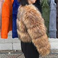 Luxury Faux Fur Coat | Thick Fox Raccoon Leather Brown Plus Size Especially Fake Fur Cold Coat