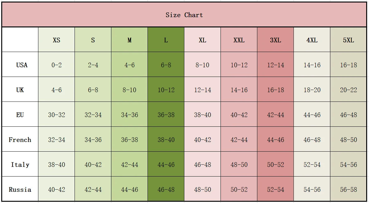 Size: XS S M L XL XXL 3XL 4XL 5XL