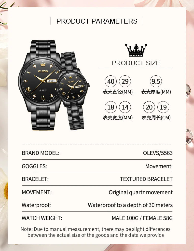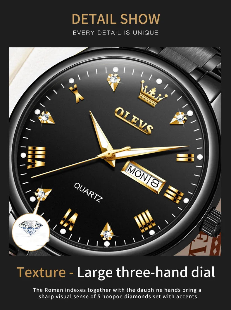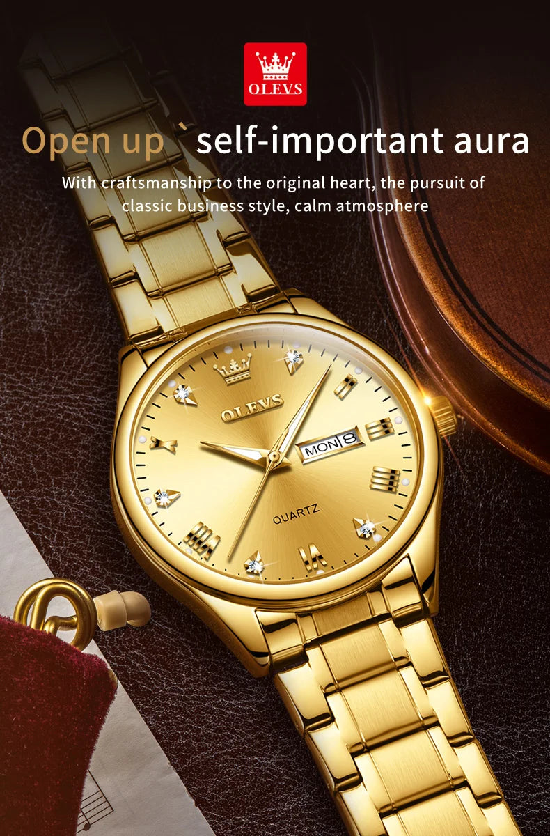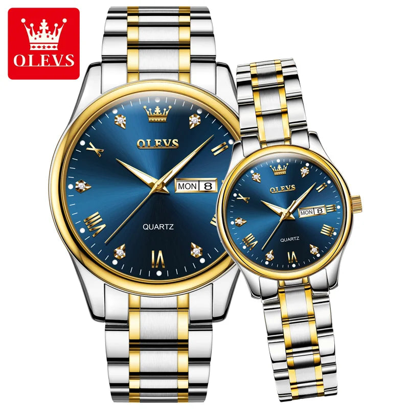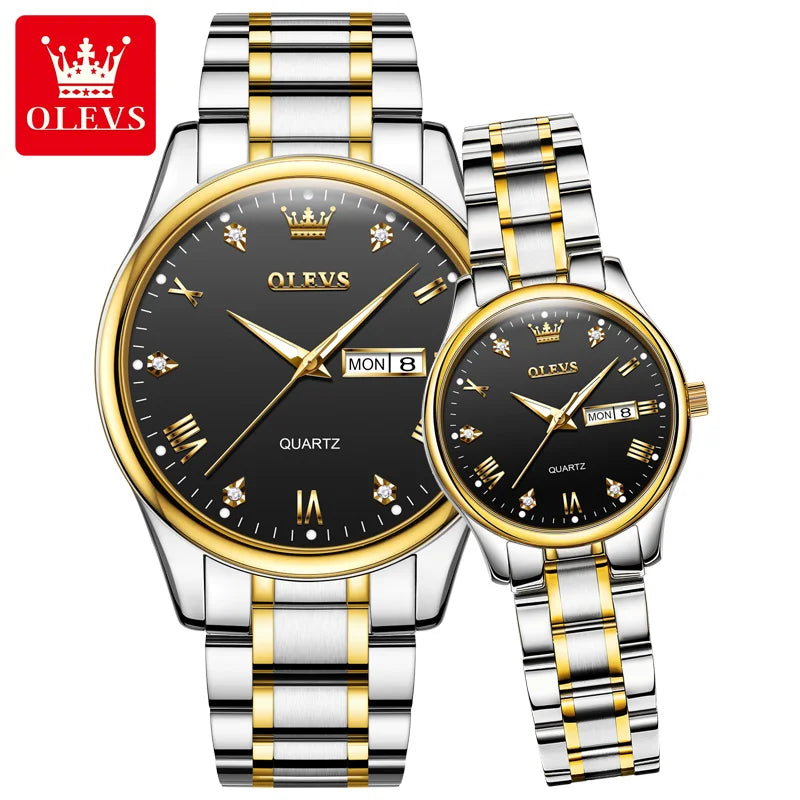 OLEVS 5563 Luxury Quartz Wristwatch For Couple | Dual Calendar Waterproof Hand Clock