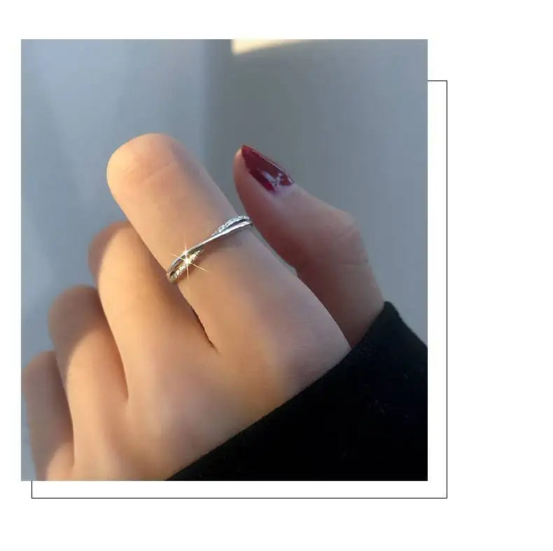Matte Line rings |  Silver Color Ring Women's White Cold Color Style | Cross Ring