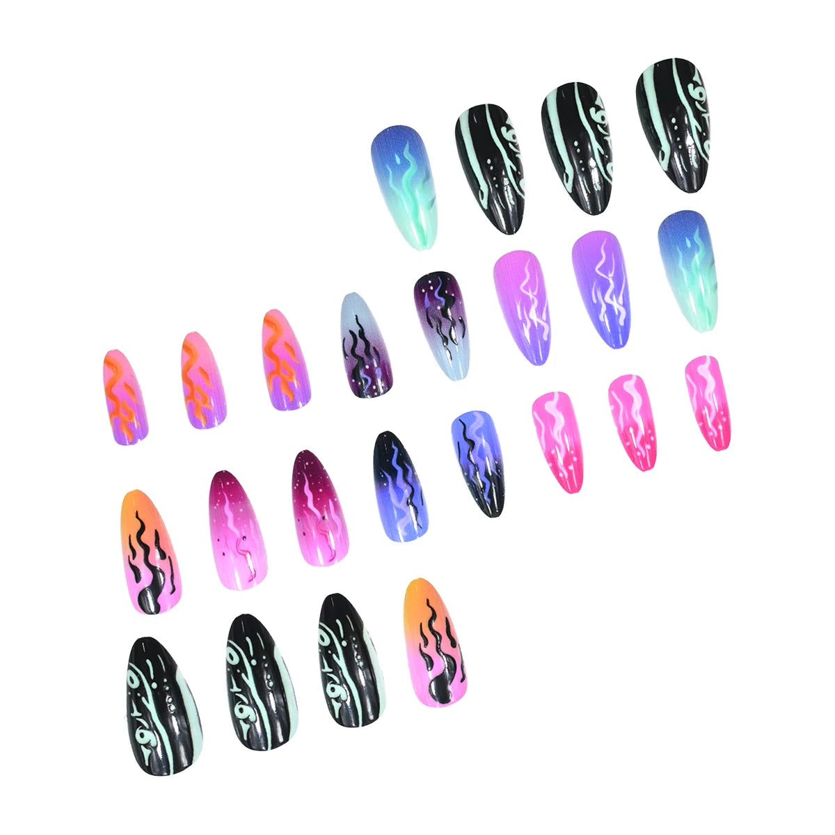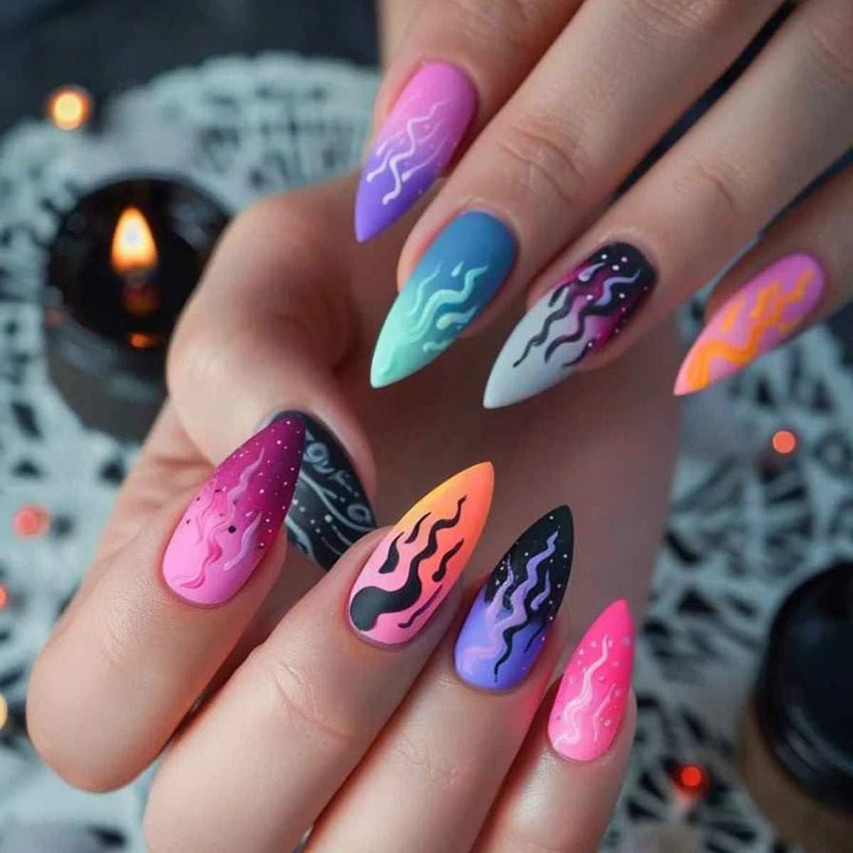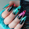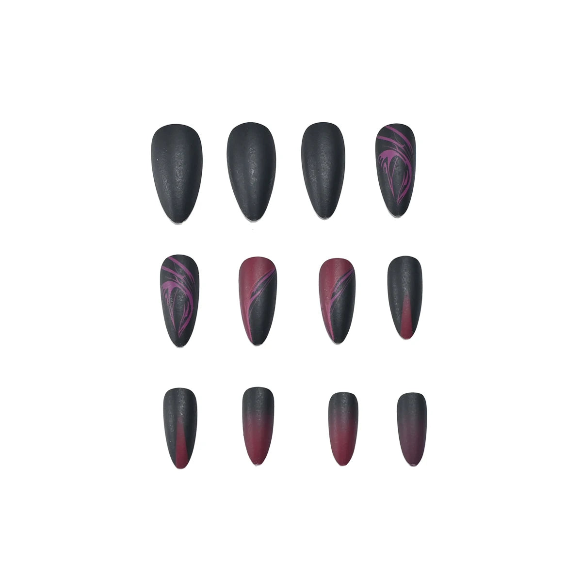 24 medium almond nails and winter black matte texture| fake nails manicures