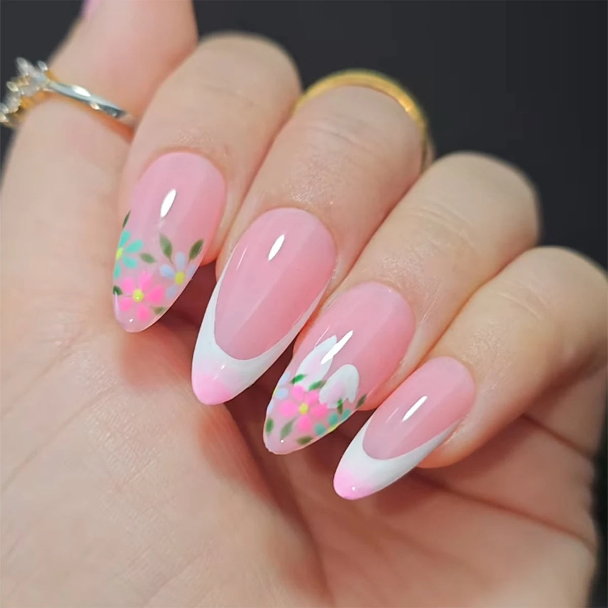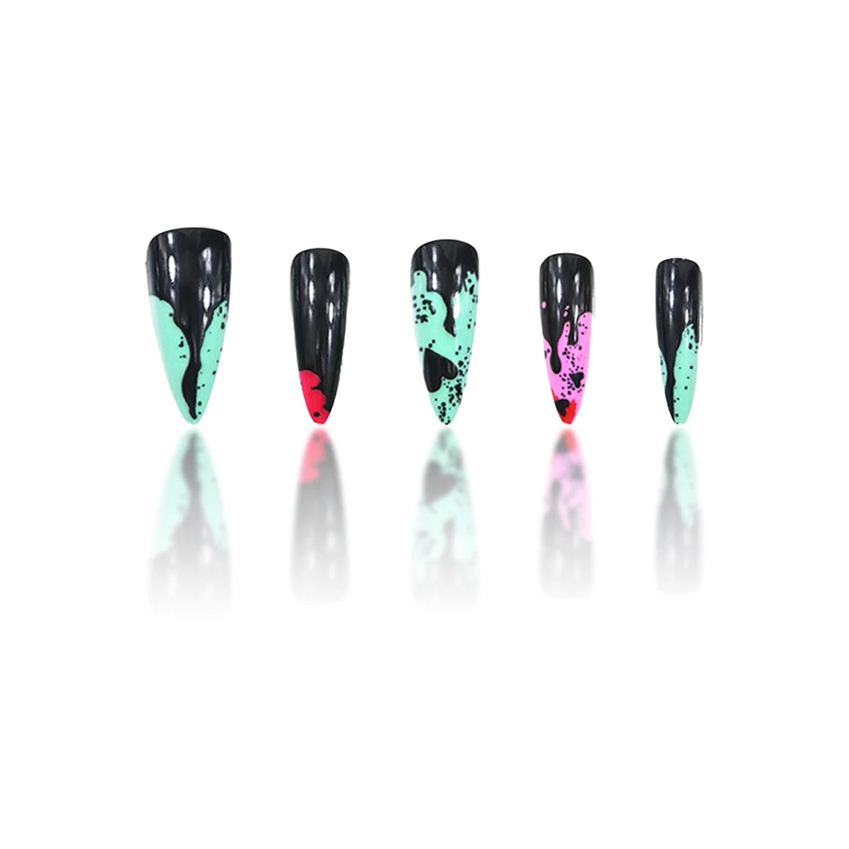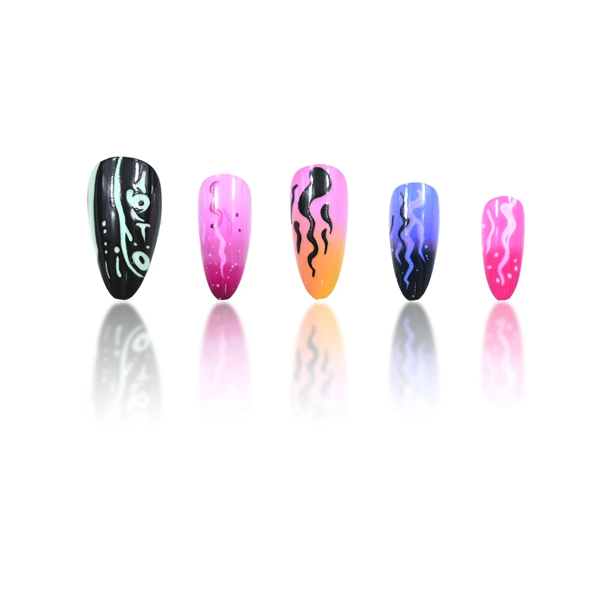 24 medium almond nails and winter black matte texture| fake nails manicures