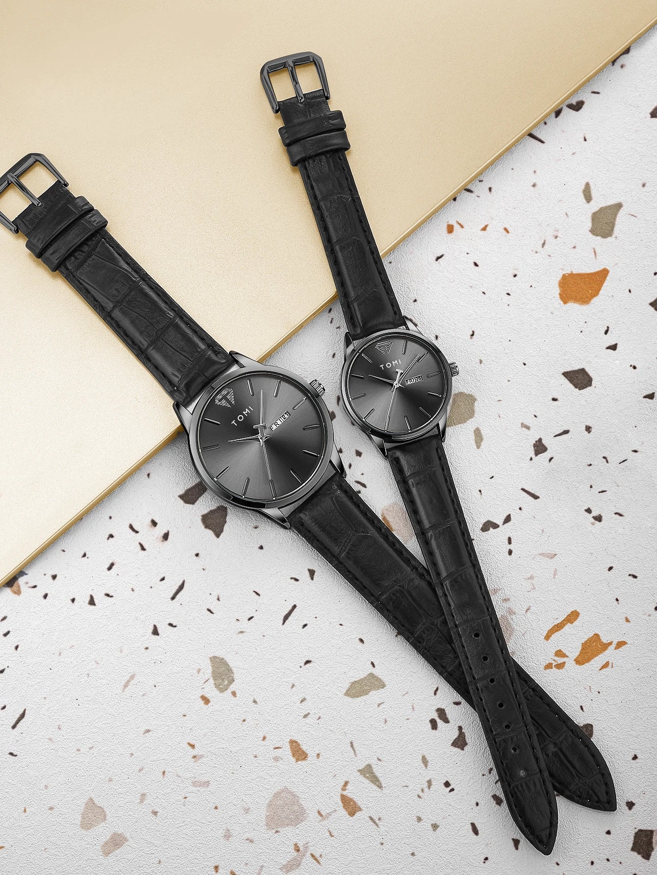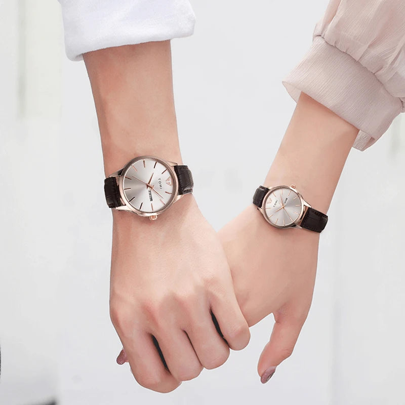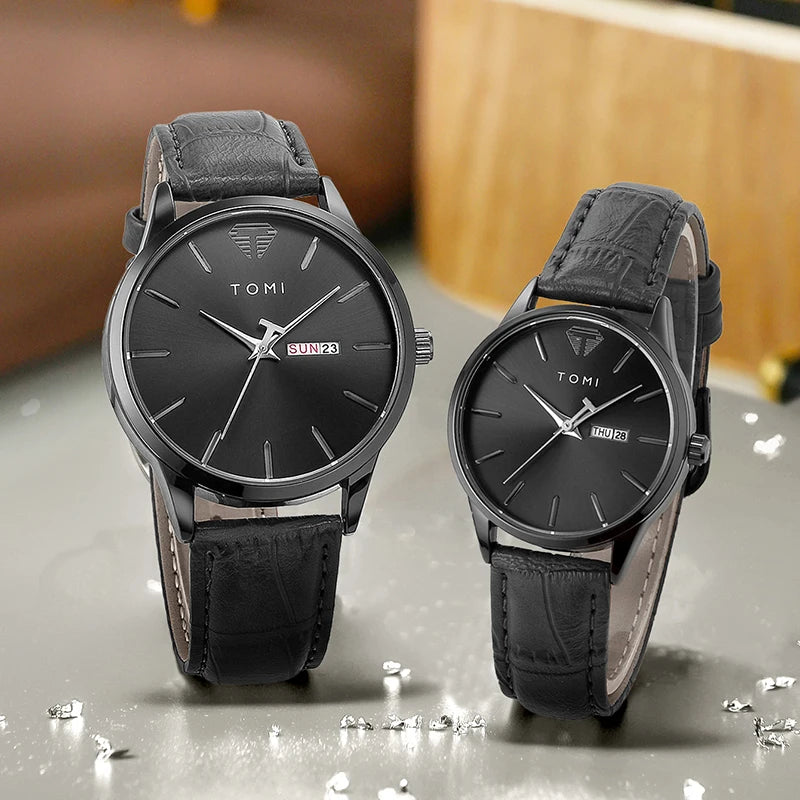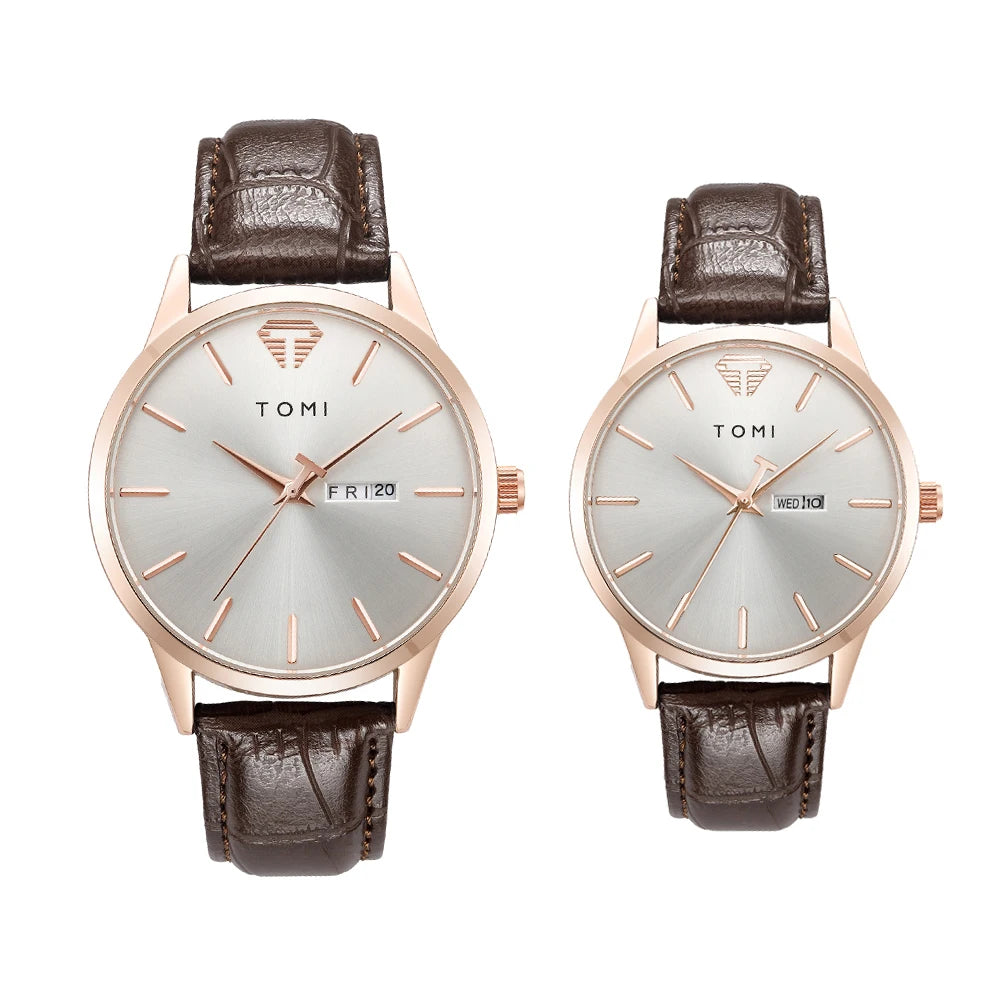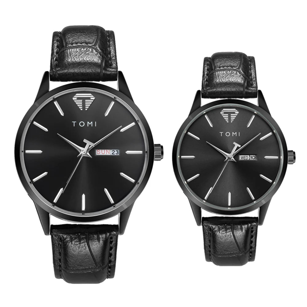 TOMI Two-Piece Casual Minimalist Couple Watch | Luxury Circular Large Dial Calendar Quartz Watch