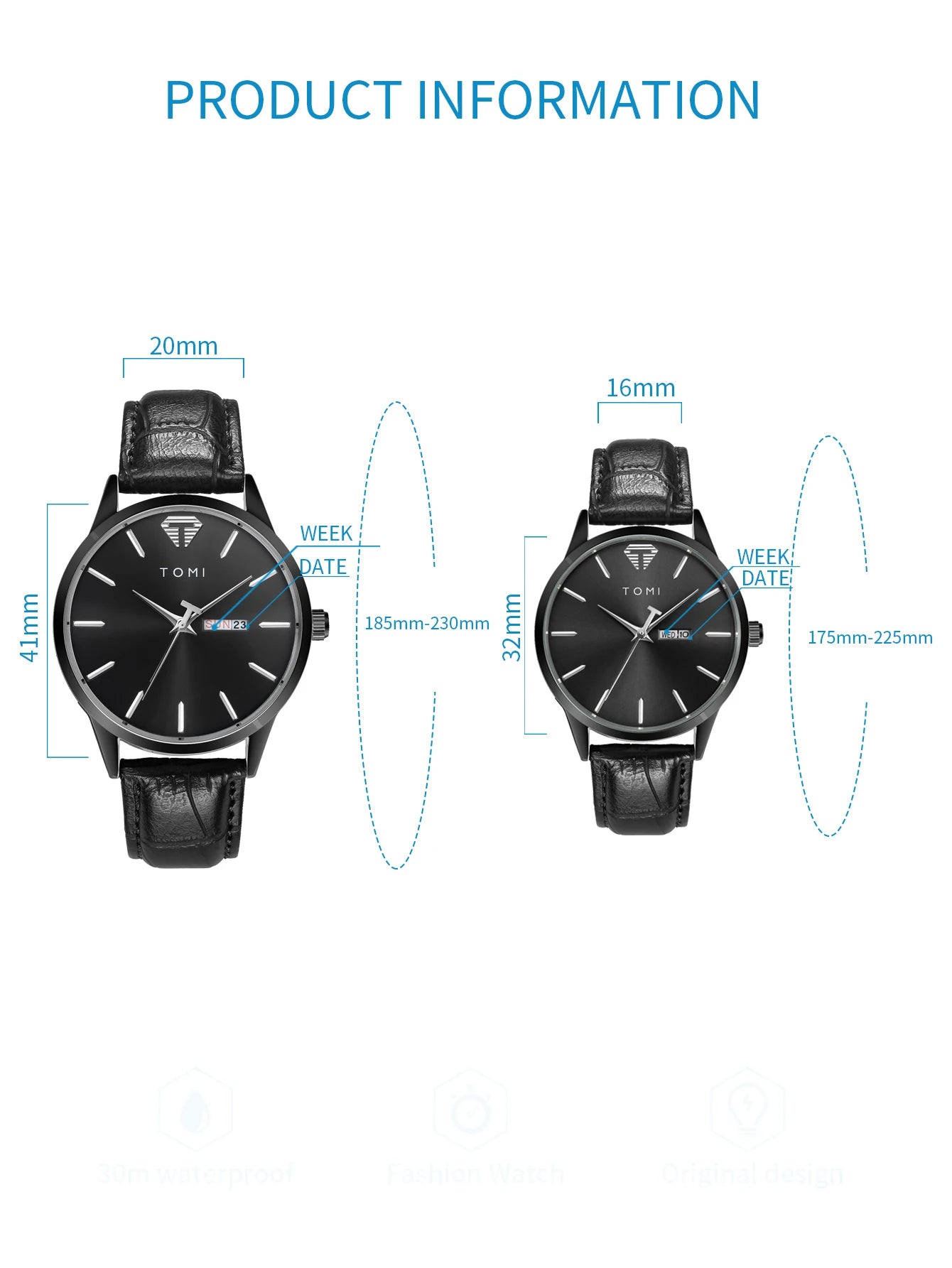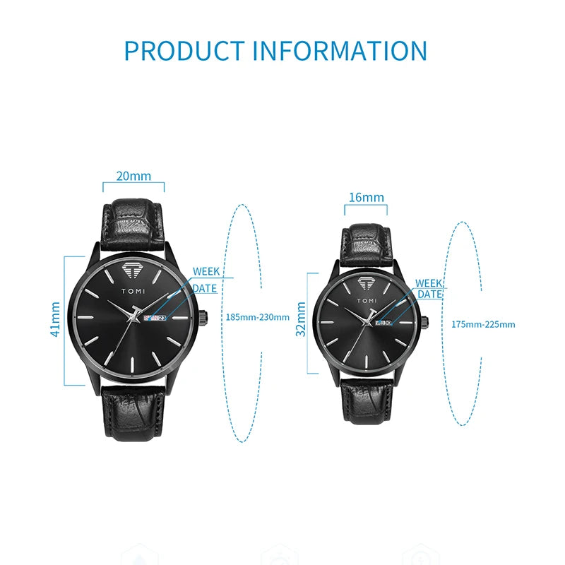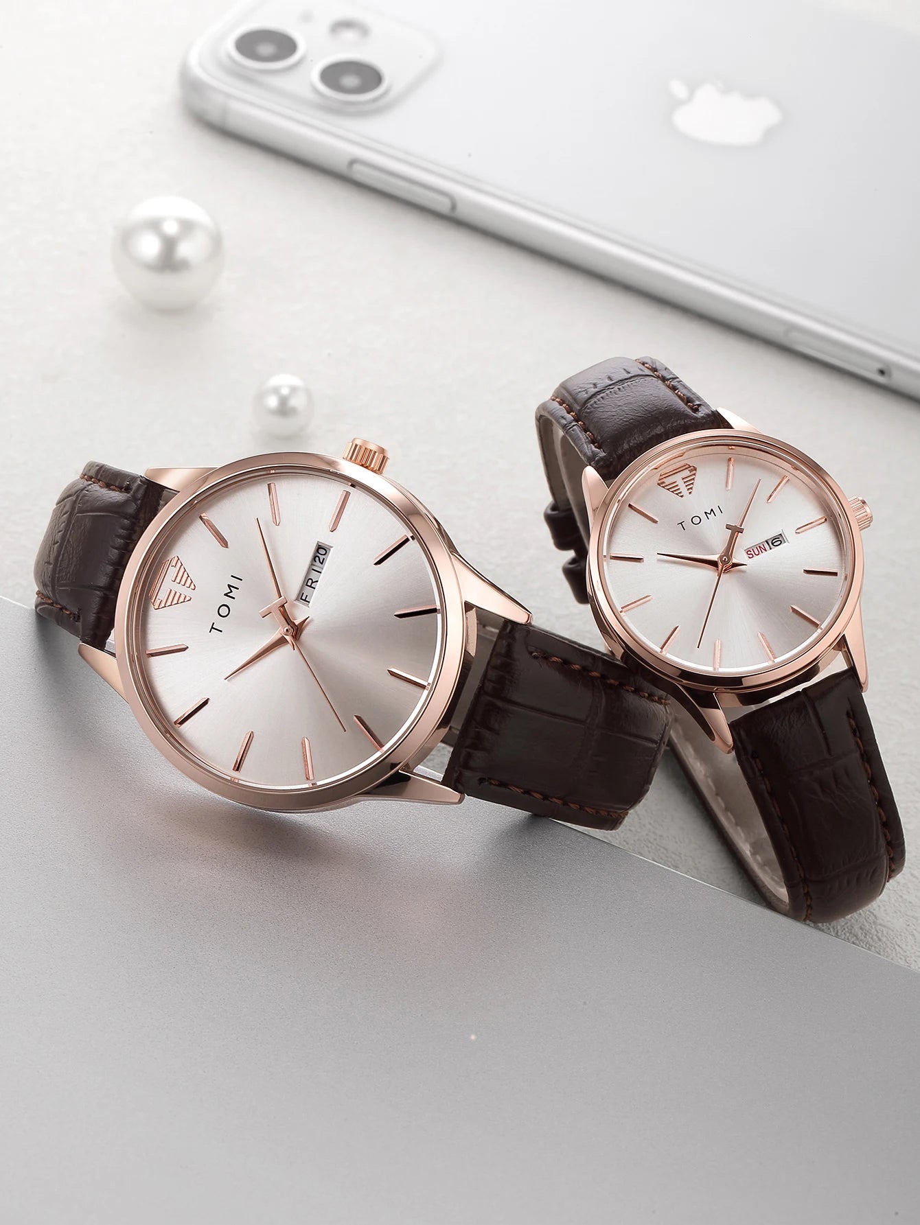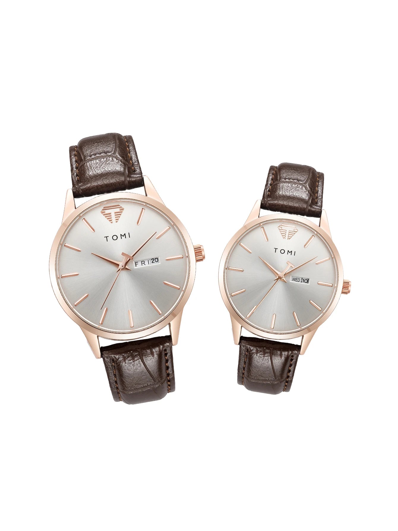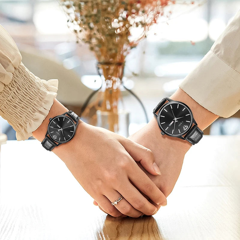 TOMI Two-Piece Casual Minimalist Couple Watch | Luxury Circular Large Dial Calendar Quartz Watch