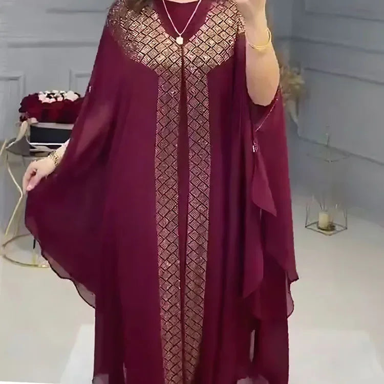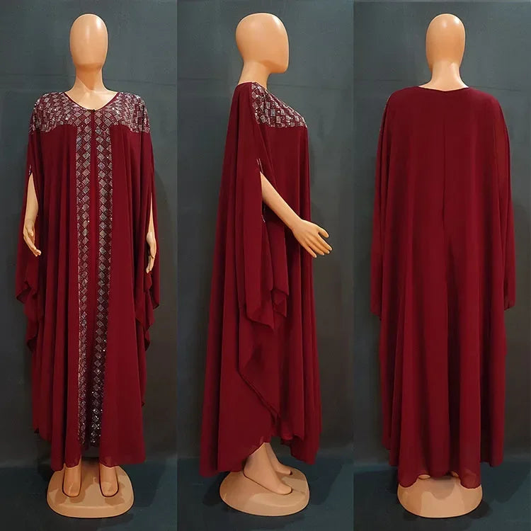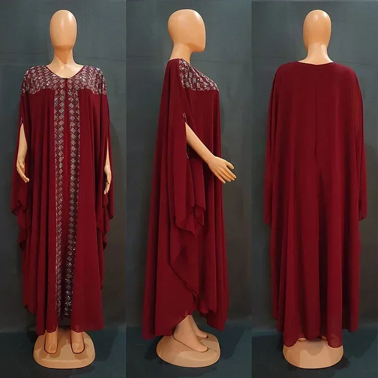 Modern Islamic Dresses For Eid | Luxury Rhinestones African Dress for Women | Muslim 2 Piece Set