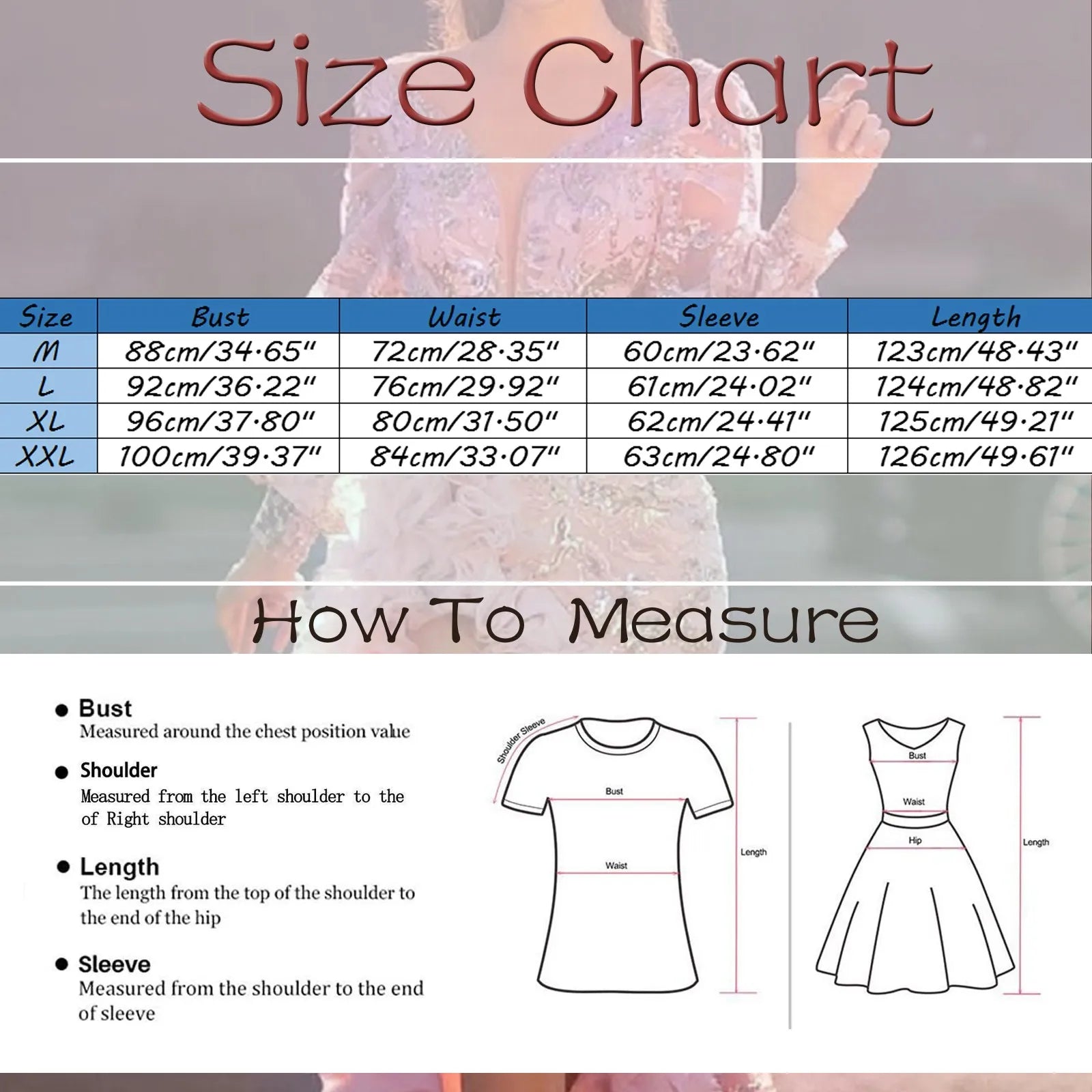 Size:M | Bust:88cm/34.65'' | Waist:72cm/28.35'' | Sleeve:60cm/23.62'' | Length:123cm/48.43'' |