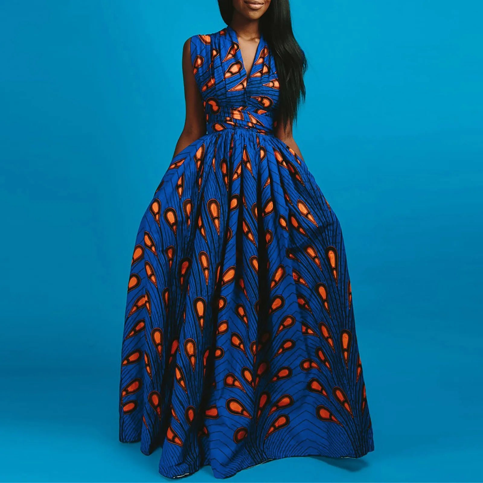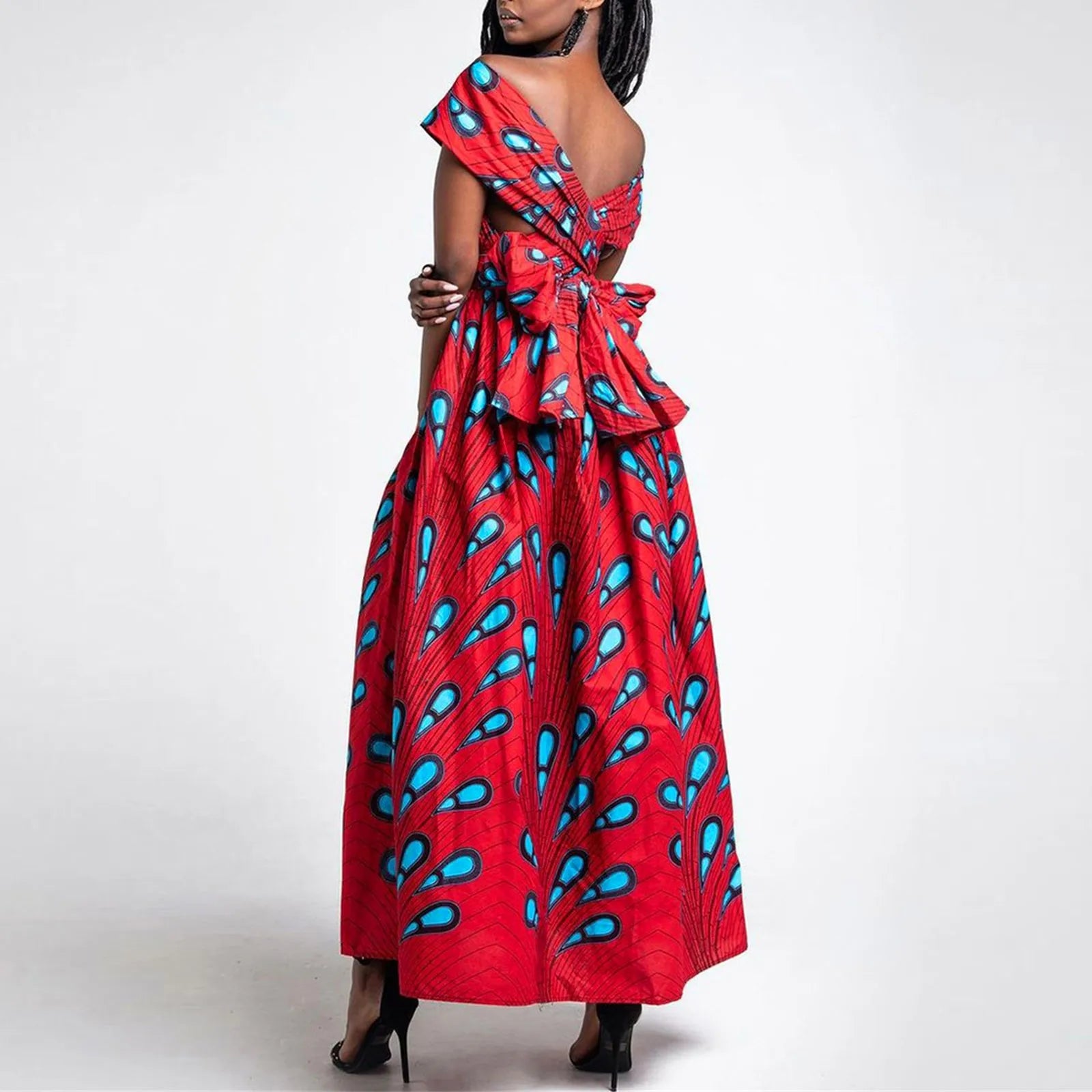 African women's print DIY multi -wearing sexy strap dress Middle split mop skirt