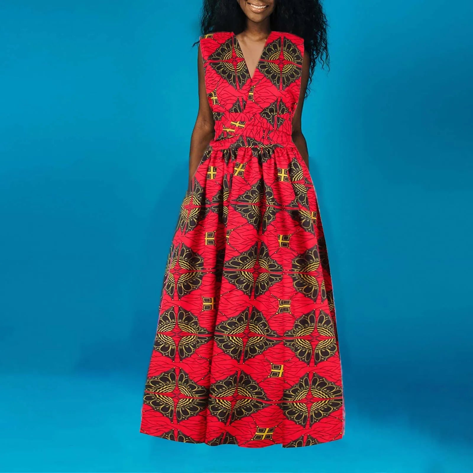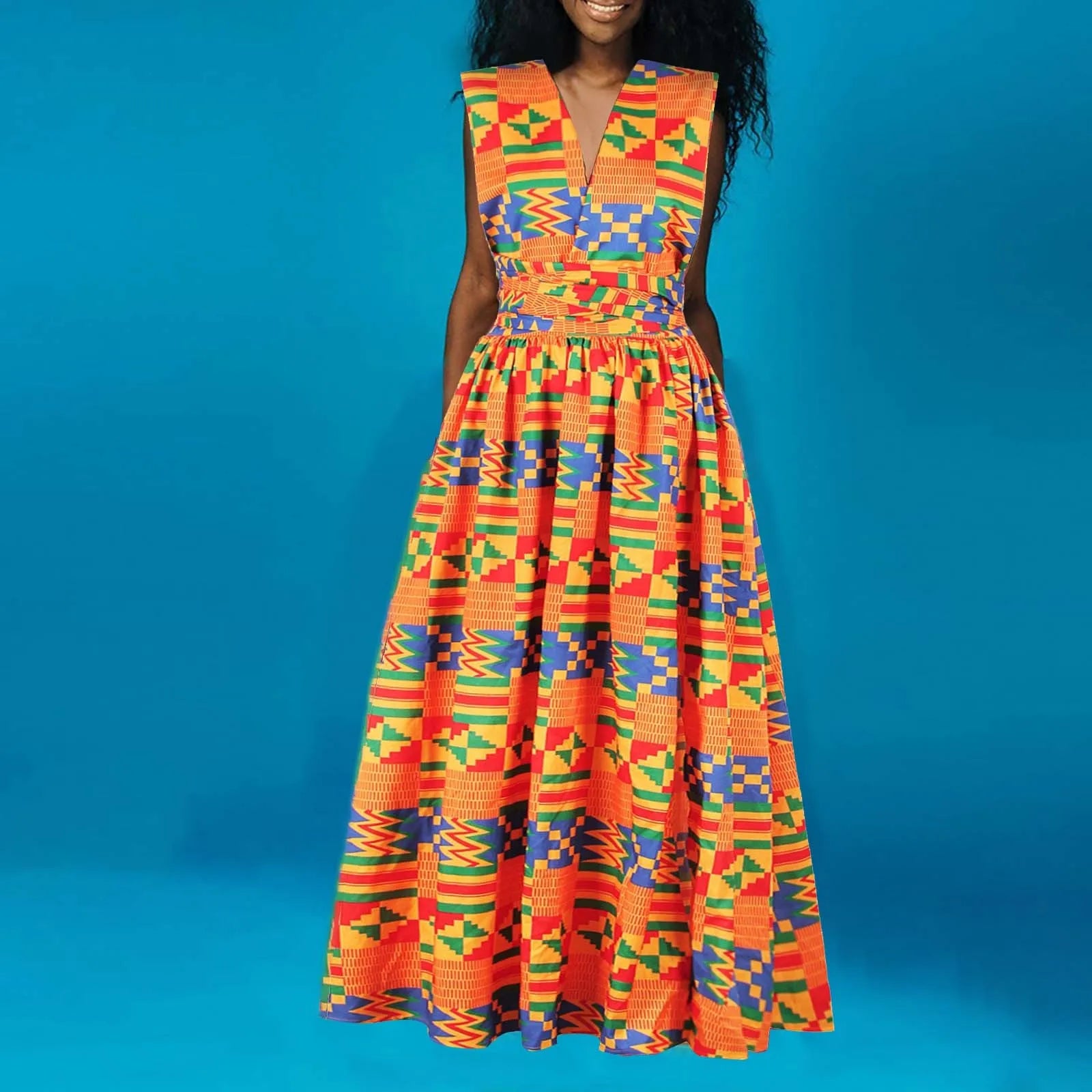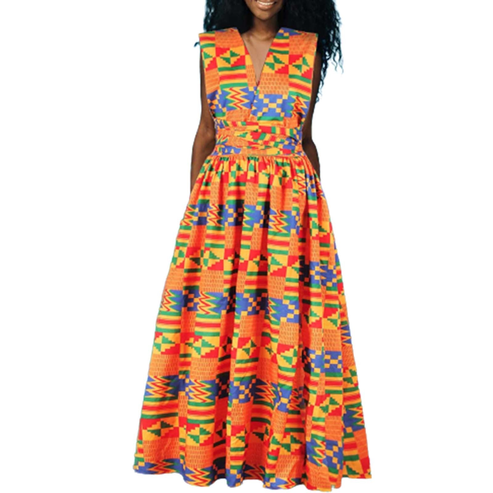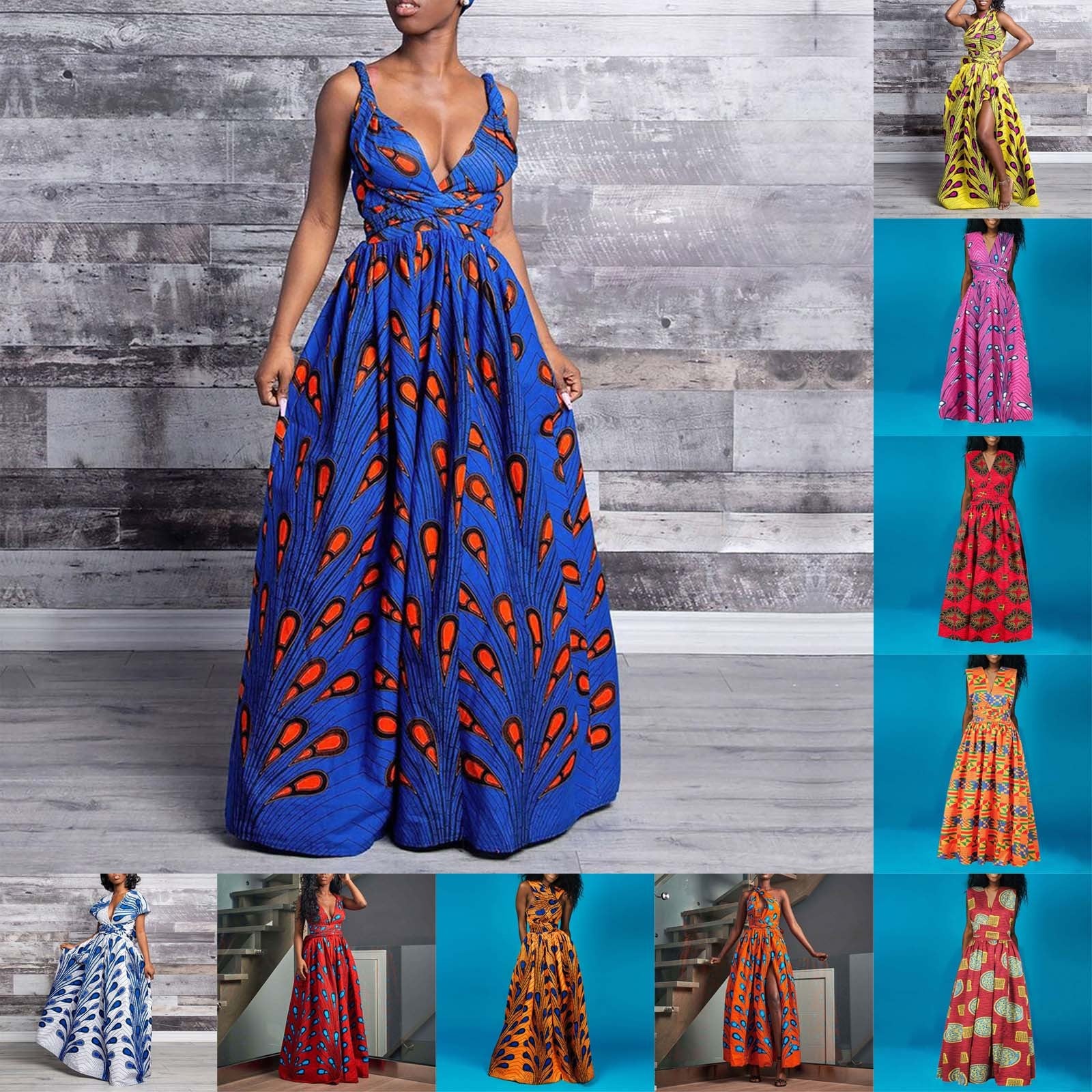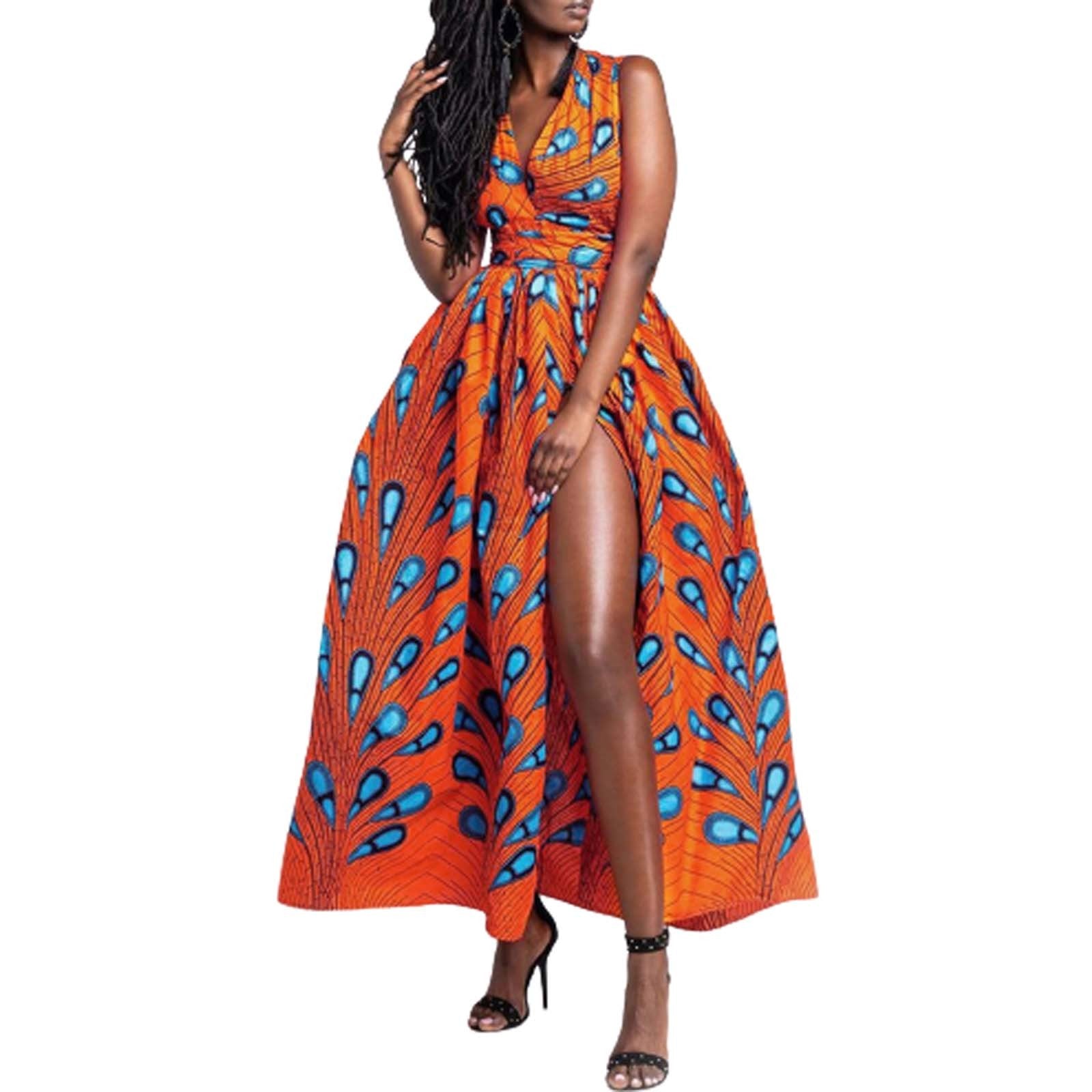 African Women's Print DIY Multi Wearing Sexy Strap Dress Middle Split Mop Skirt