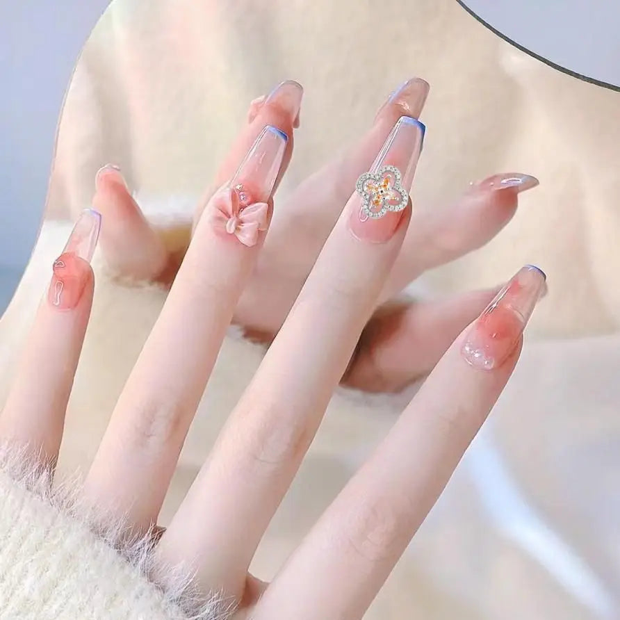 Apply a few drops of nail glue on finished manicure and place this charm on the desired area,
