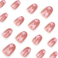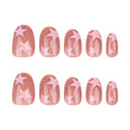 24 Nude Color False Nails | Pink Star Printed | Nails For School short | Y2K Girls Summer Fake Nails