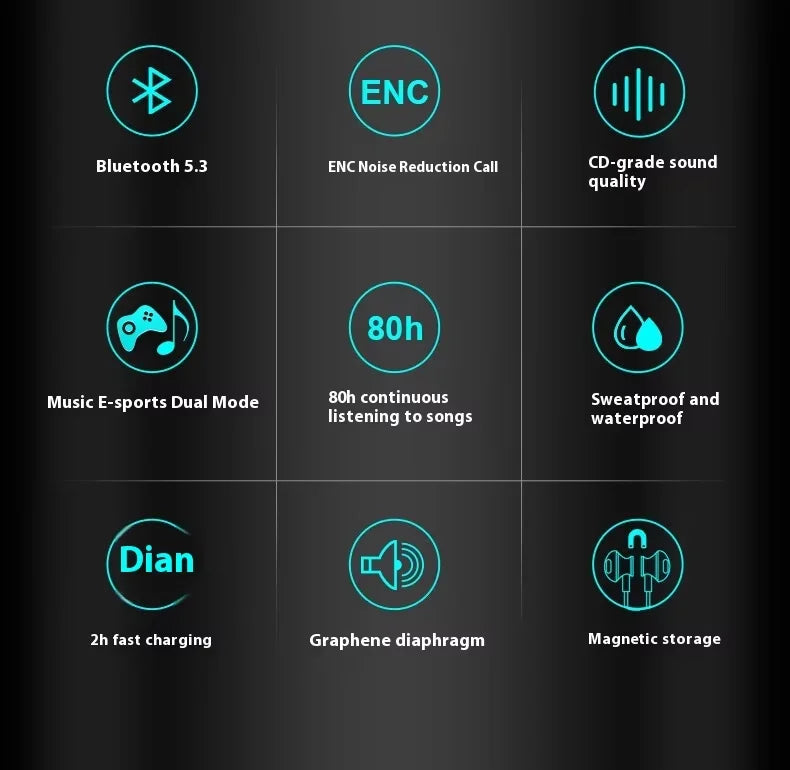 Acinaci G123 Wireless Neckband Earbuds | Neck Headphones | Built-in Microphone,Bluetooth Headset 80H Playtime