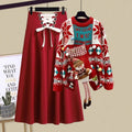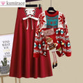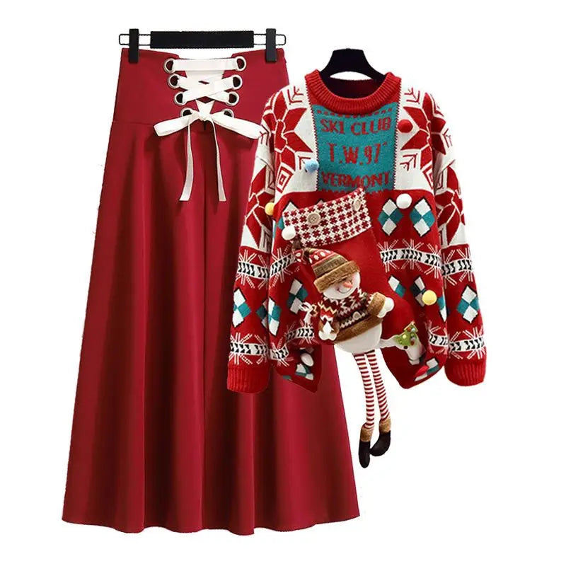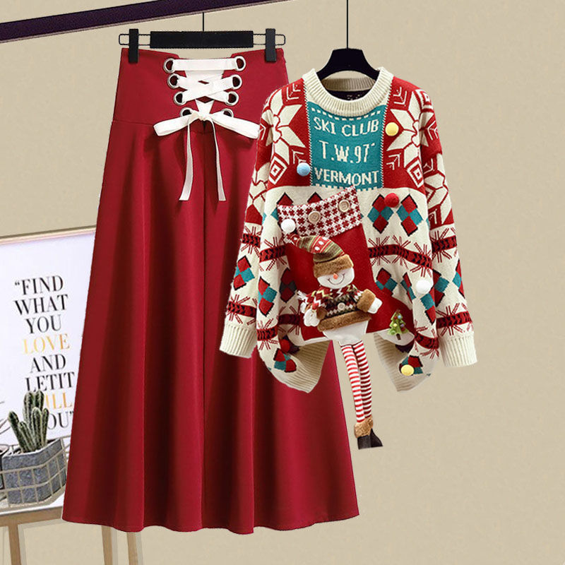 New Christmas Sweater | Knit Pullover Lace Up Pleated Half Dress | Two Piece Elegant Women's Dress