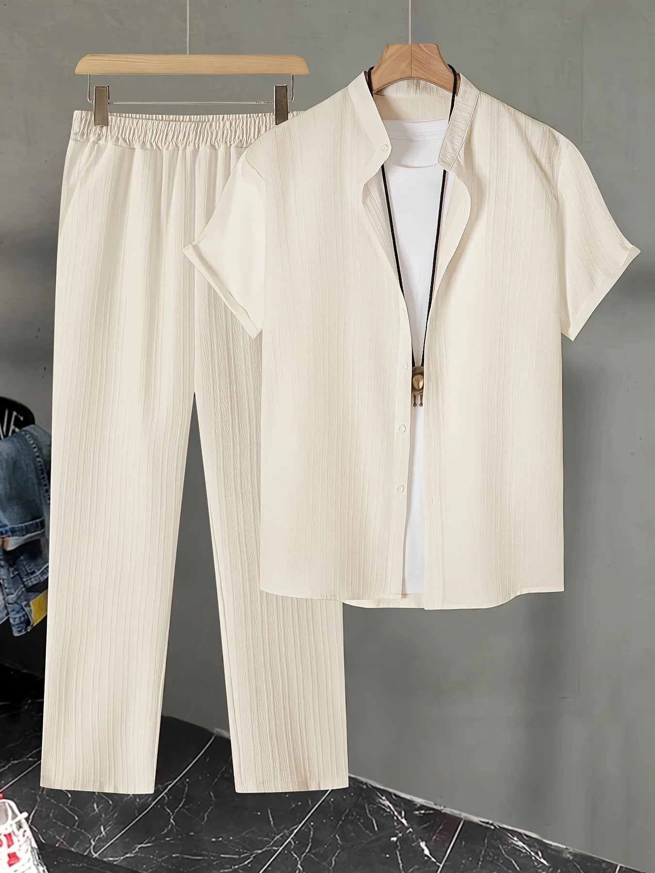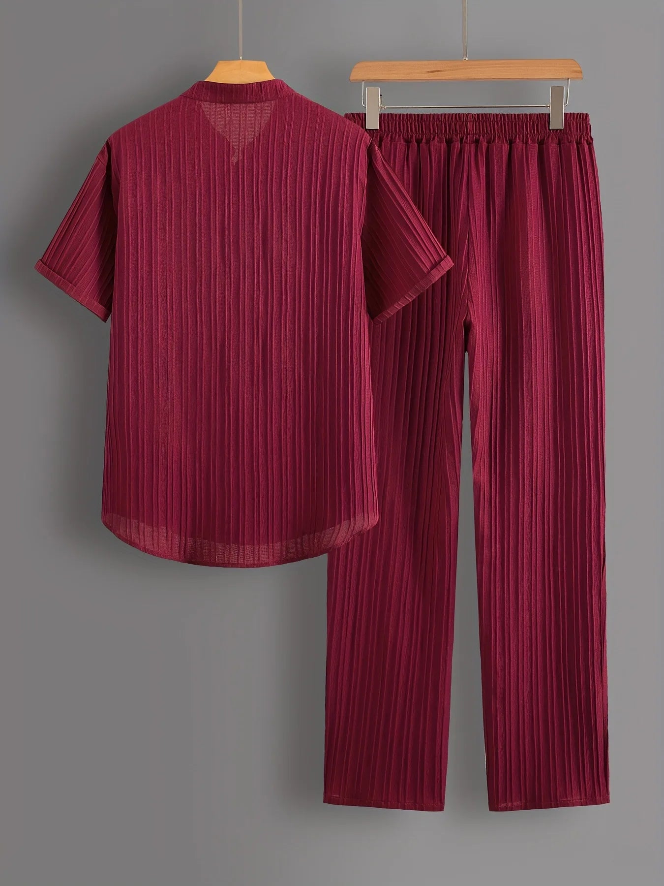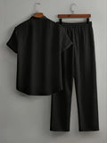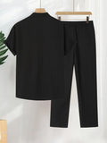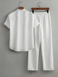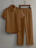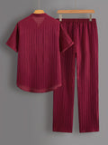 New England Fall Outfits | Loungewear Solid Color Textured Short Sleeve Button Down Shirt and Pants