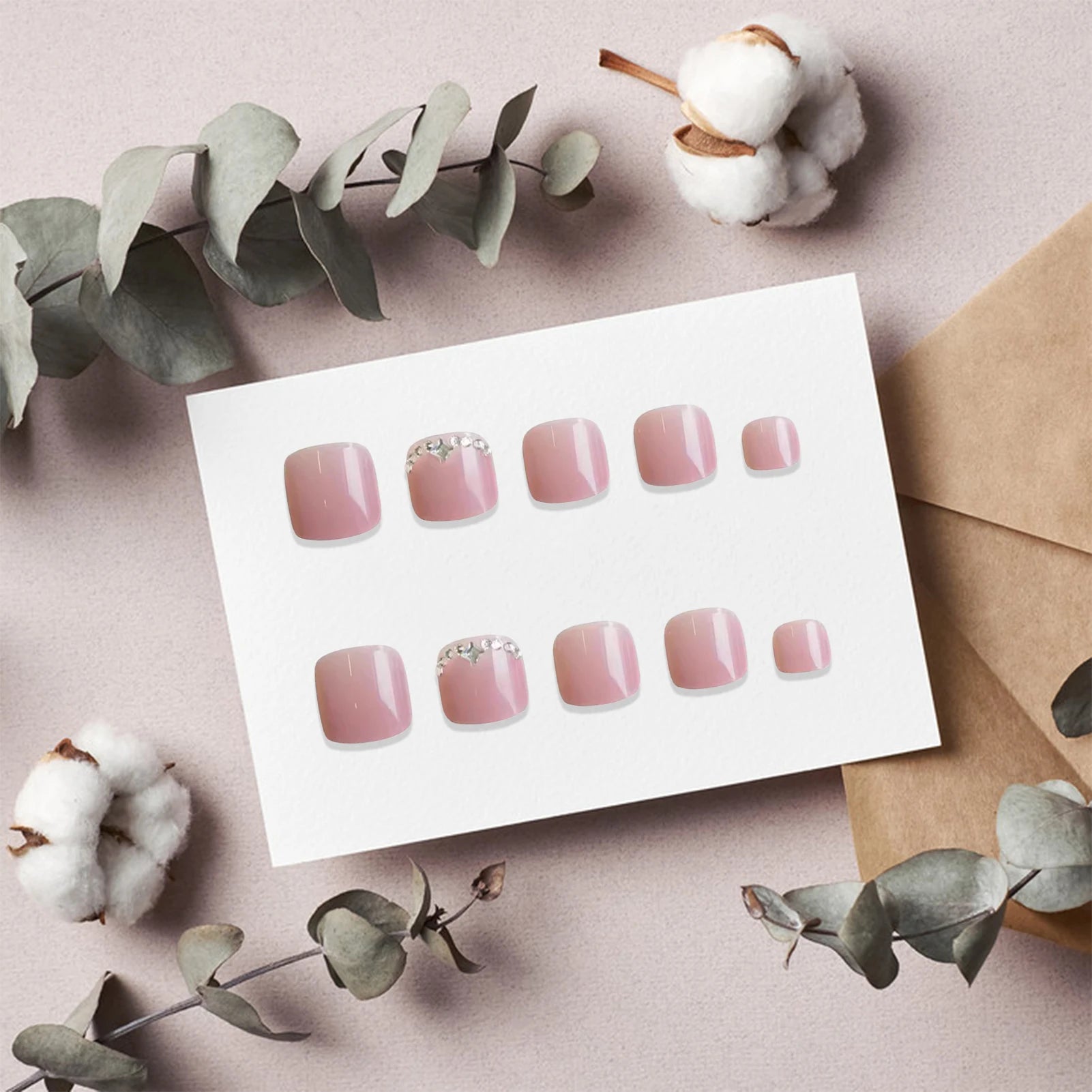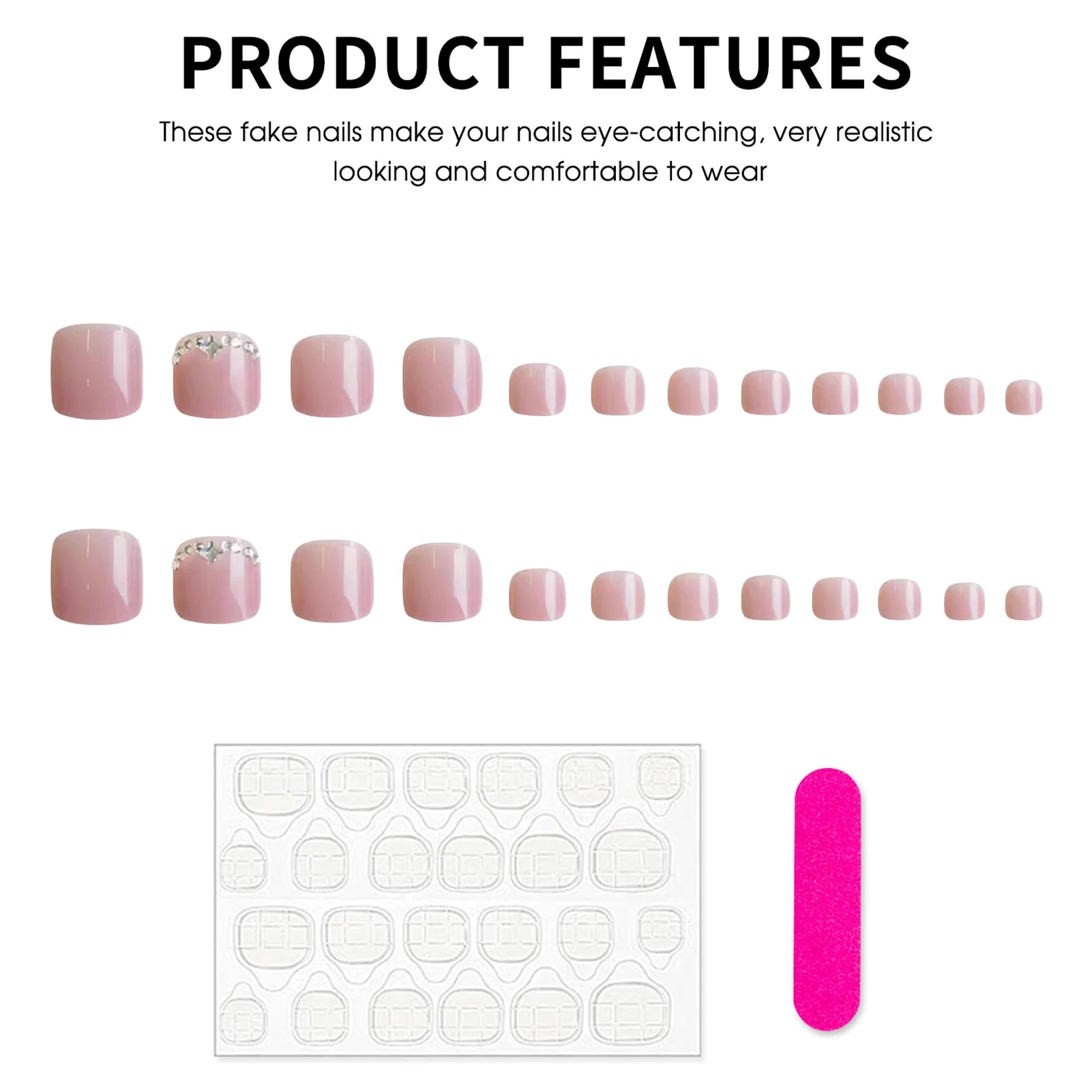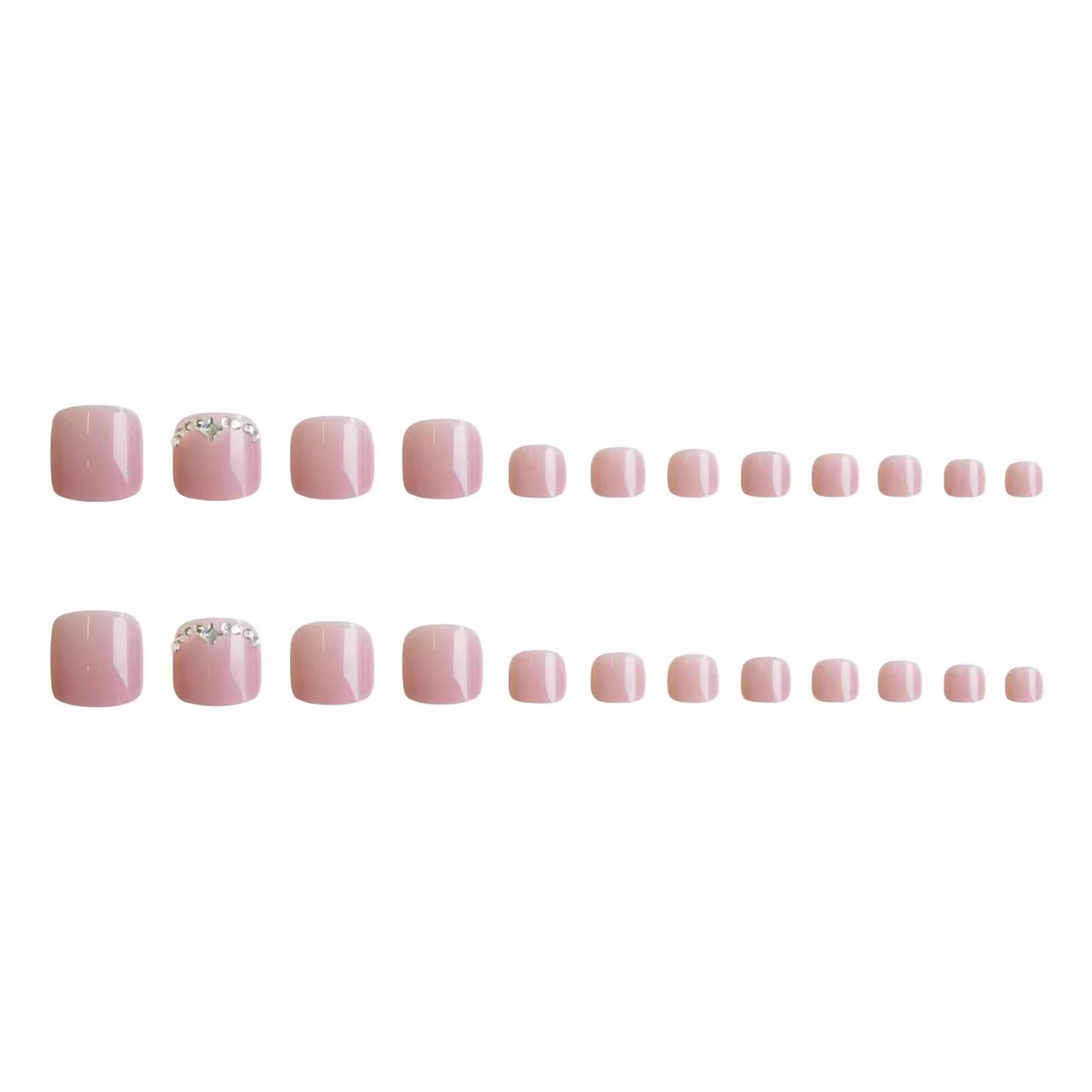 24Pcs Summer Nude Pink Toenails – Shiny Diamond Decor for Women