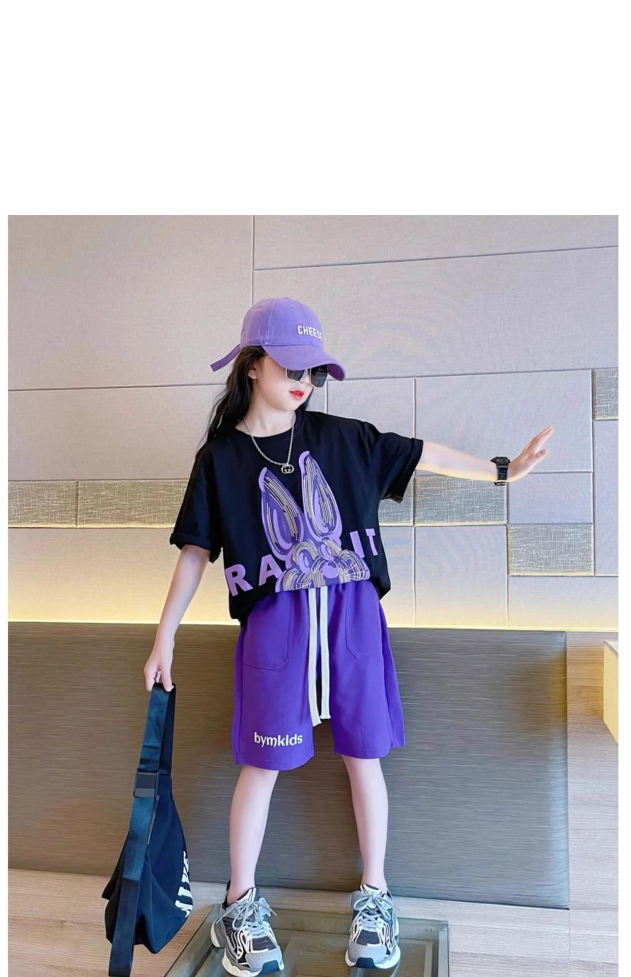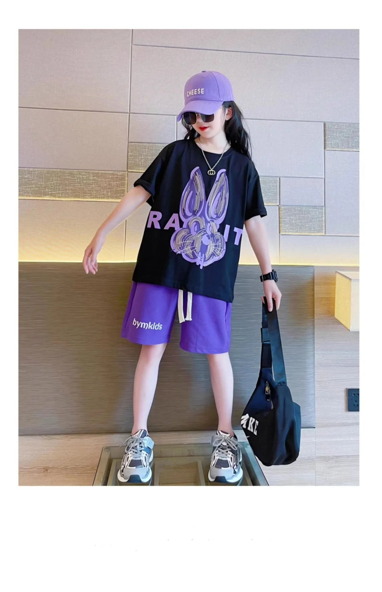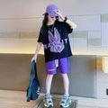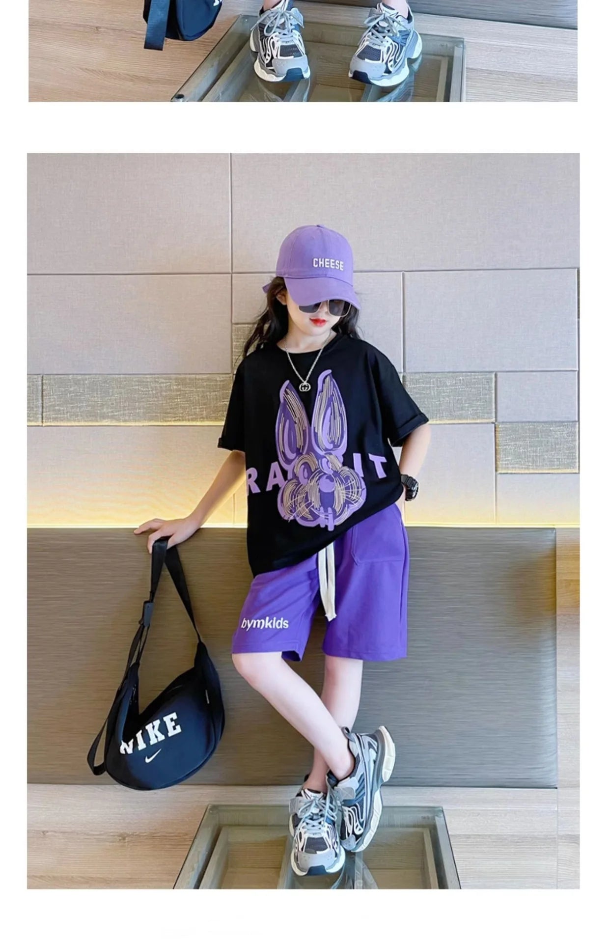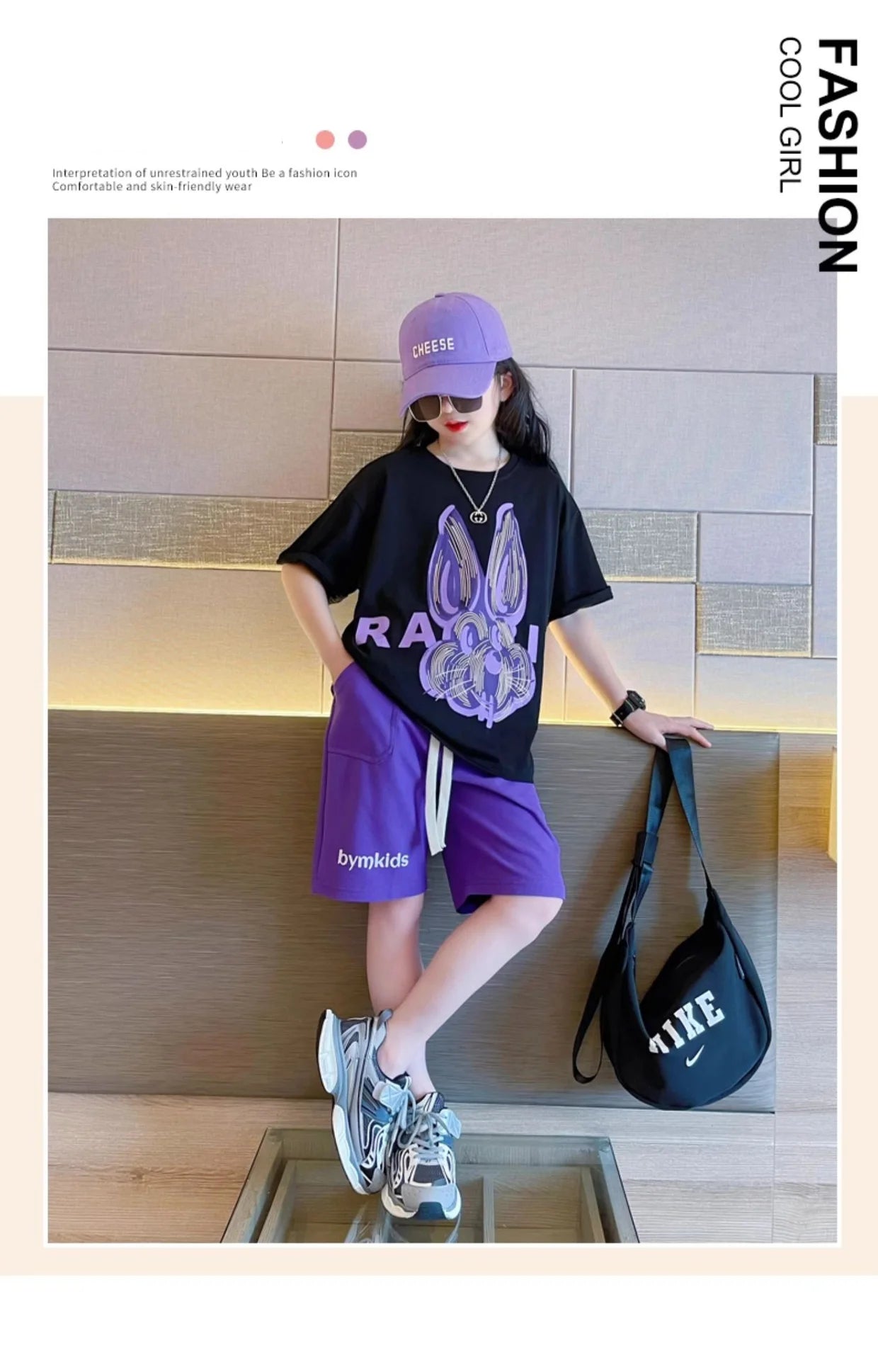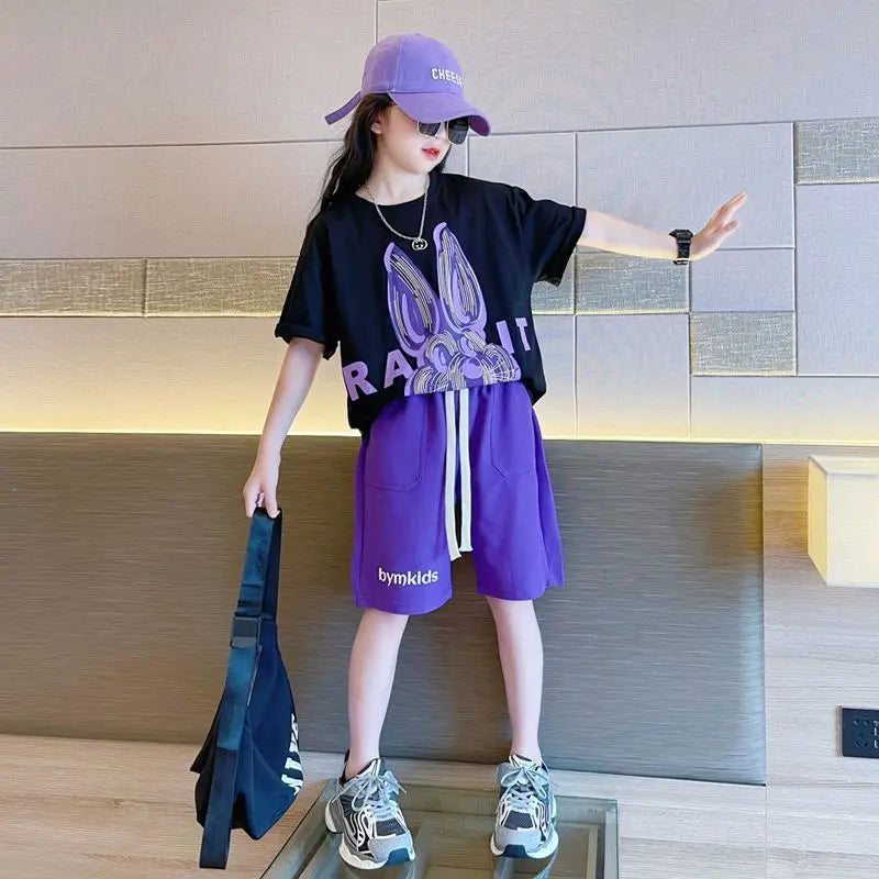 Summer Girls Cartoon T-Shirt | Outfits For 10 Year Olds Girl | School Kids 2PCS Tracksuit Children Jogging Outfit 2-14 Yr