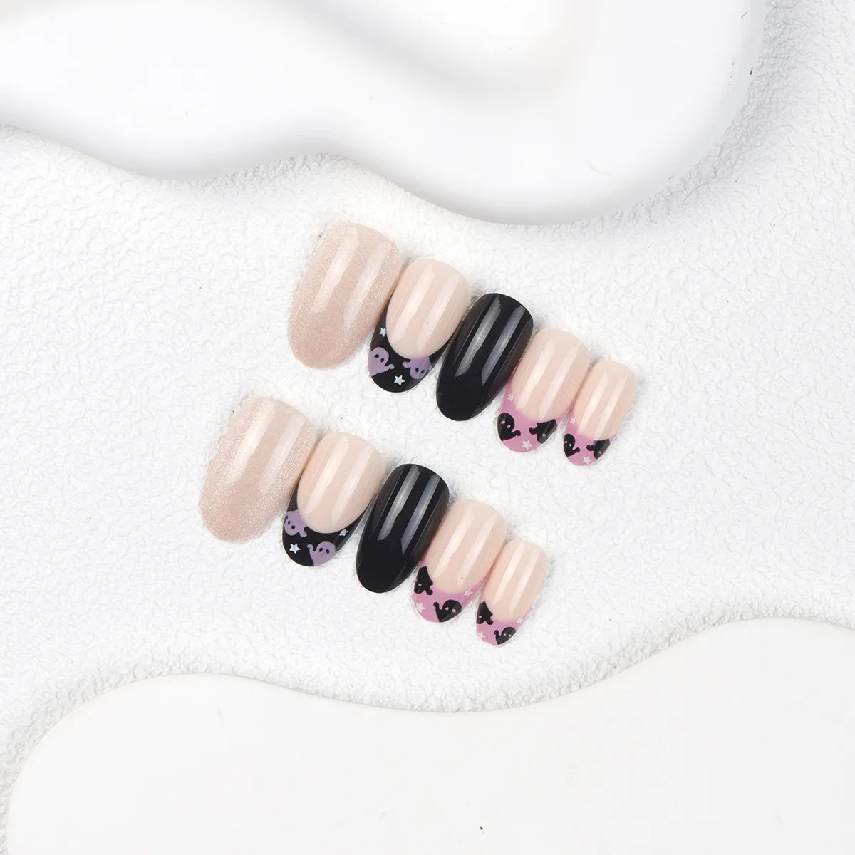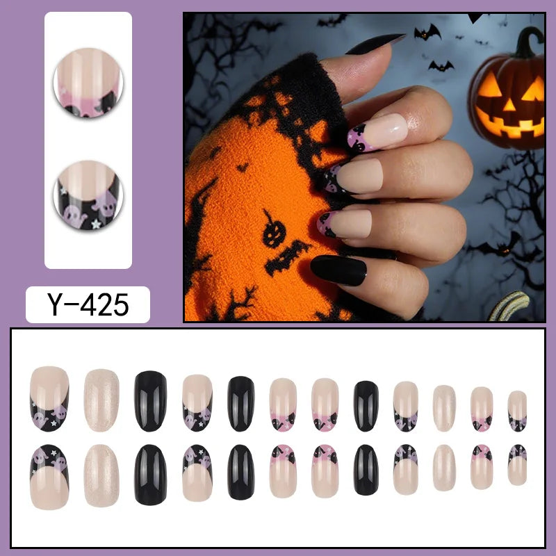 24 Oval Halloween Nails | Press-On Fake Nails | Halloween Themed Nail Art Accessories