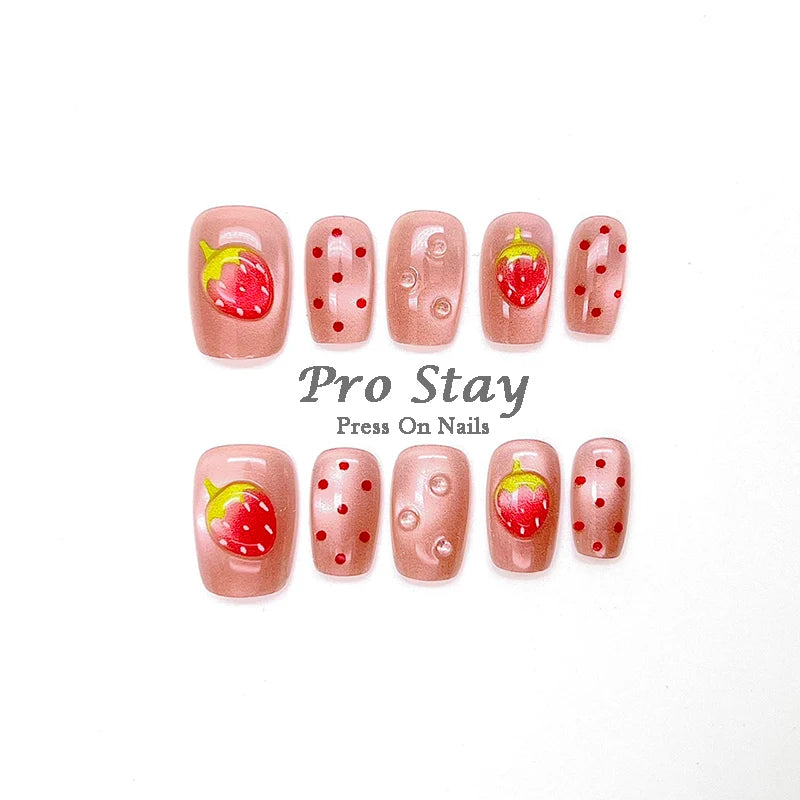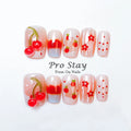 10 Pink Cherry Nail Design | 3d Pink Cherry & Heart Fake Nail With Diamond Reusable Tips