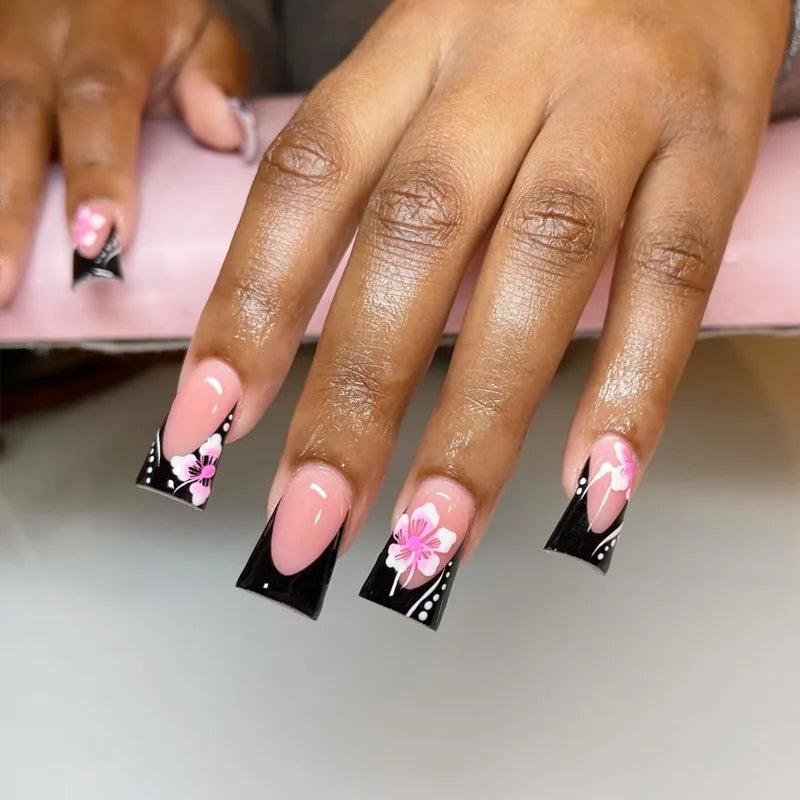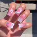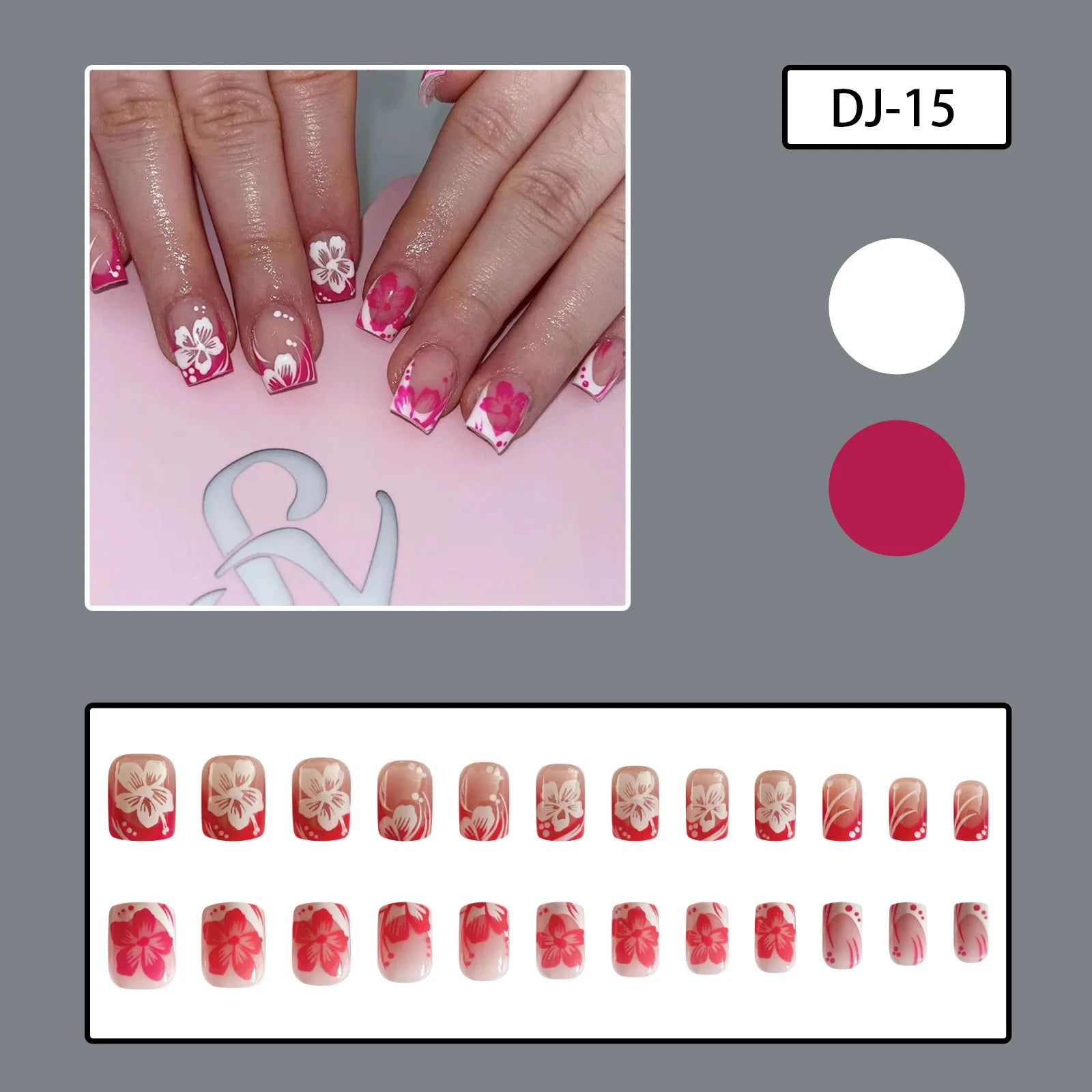 24 Pink Spring Nails | French Tips Press on Nails | Floral Designs Square False Nails