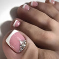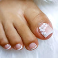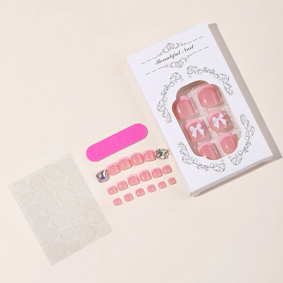 24pcs French pink toe nail designs White Bow | Summer Press On Nail for Feet