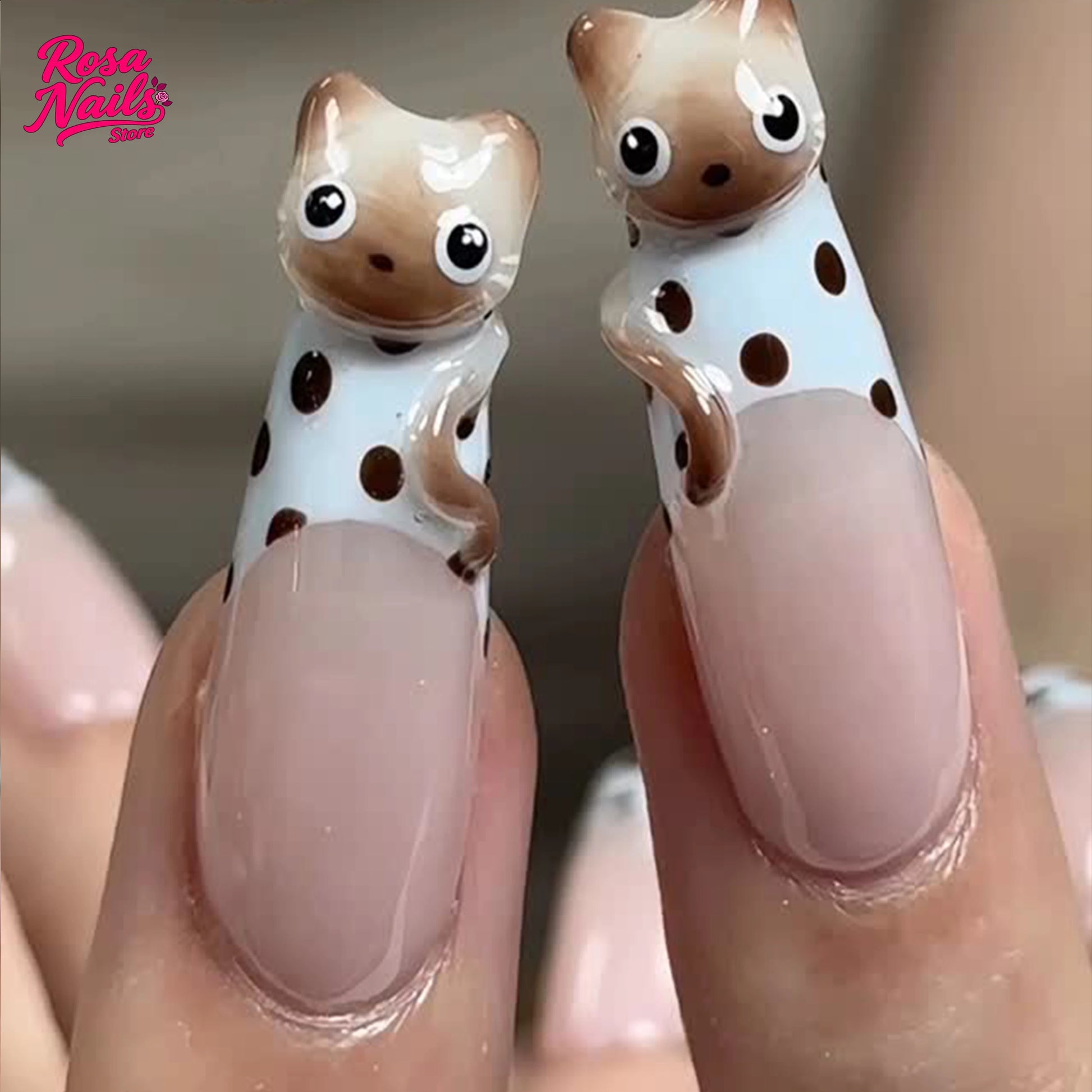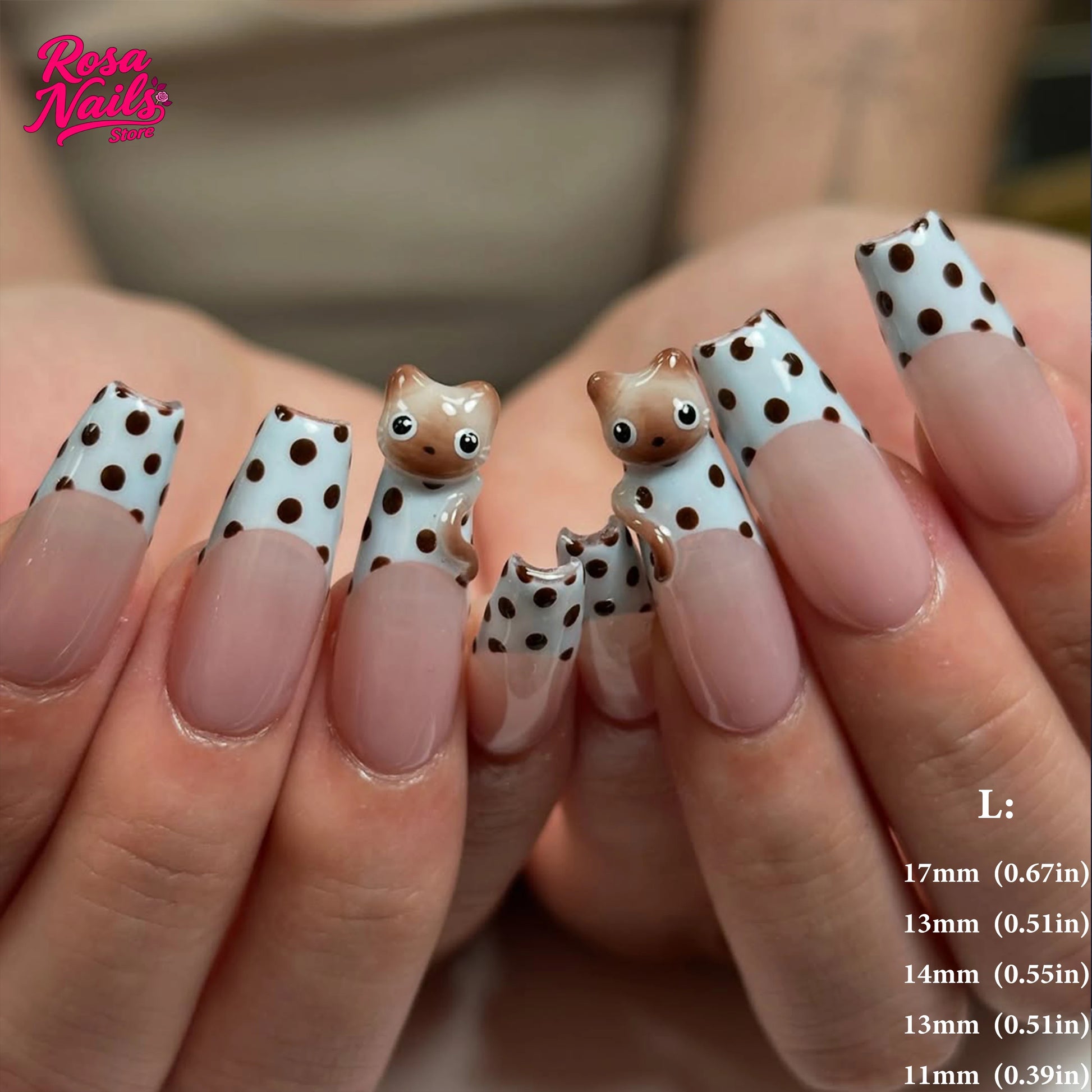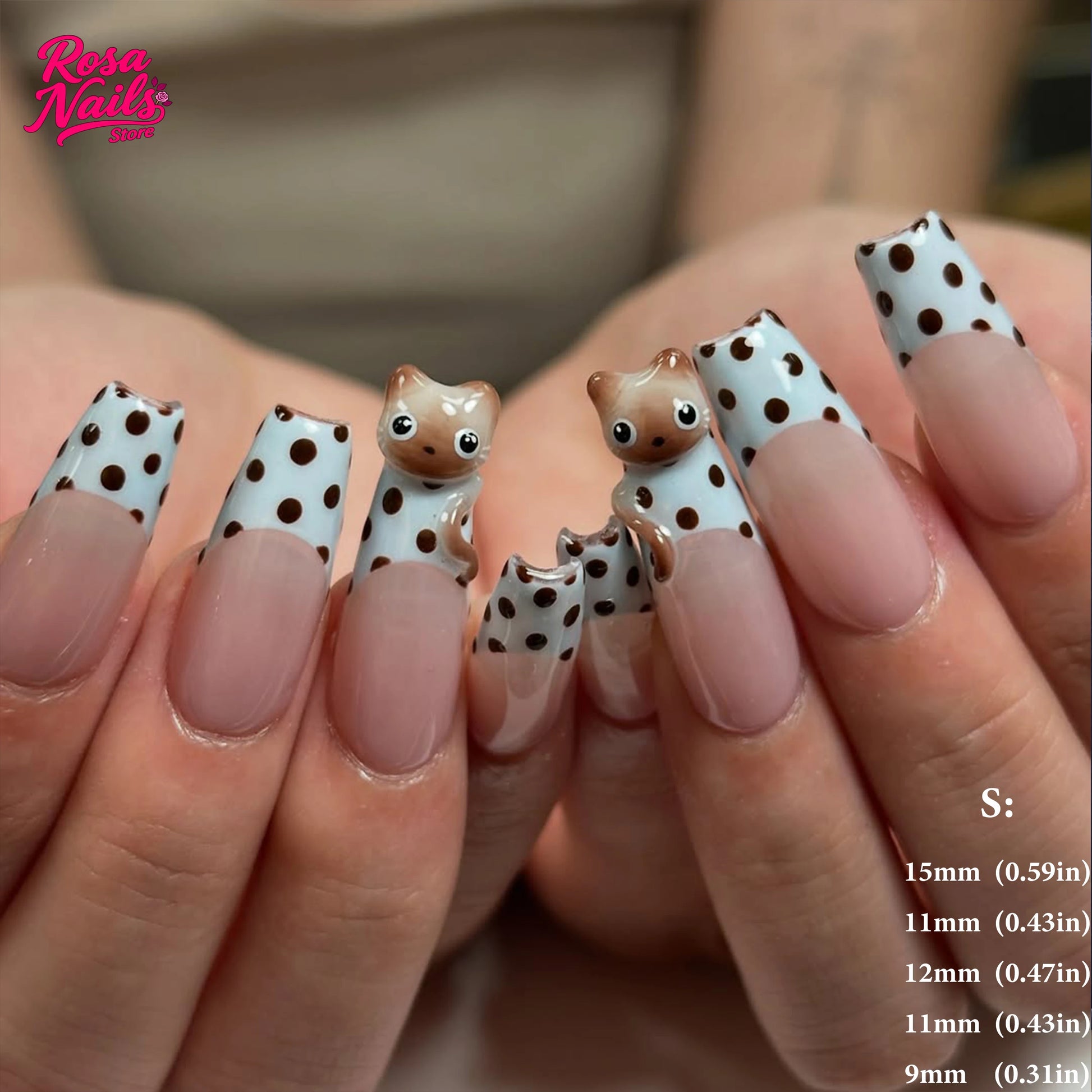 3D Polka Dots Nails | Press on Nails Handmade Kitties Nail Art | Hand Sculpted Long Coffin