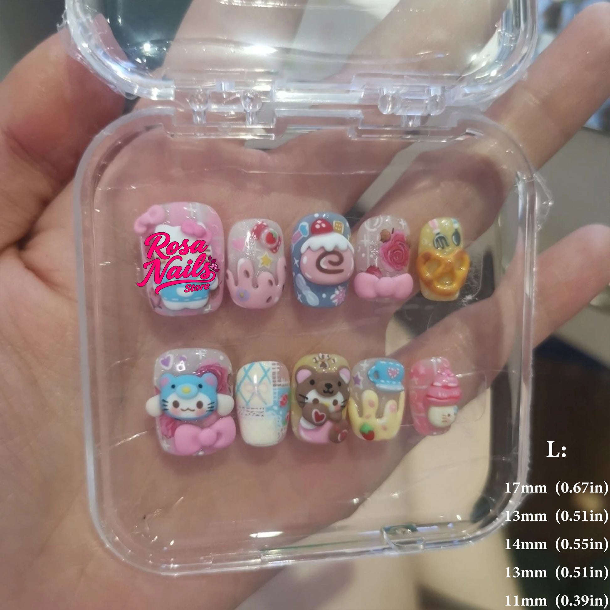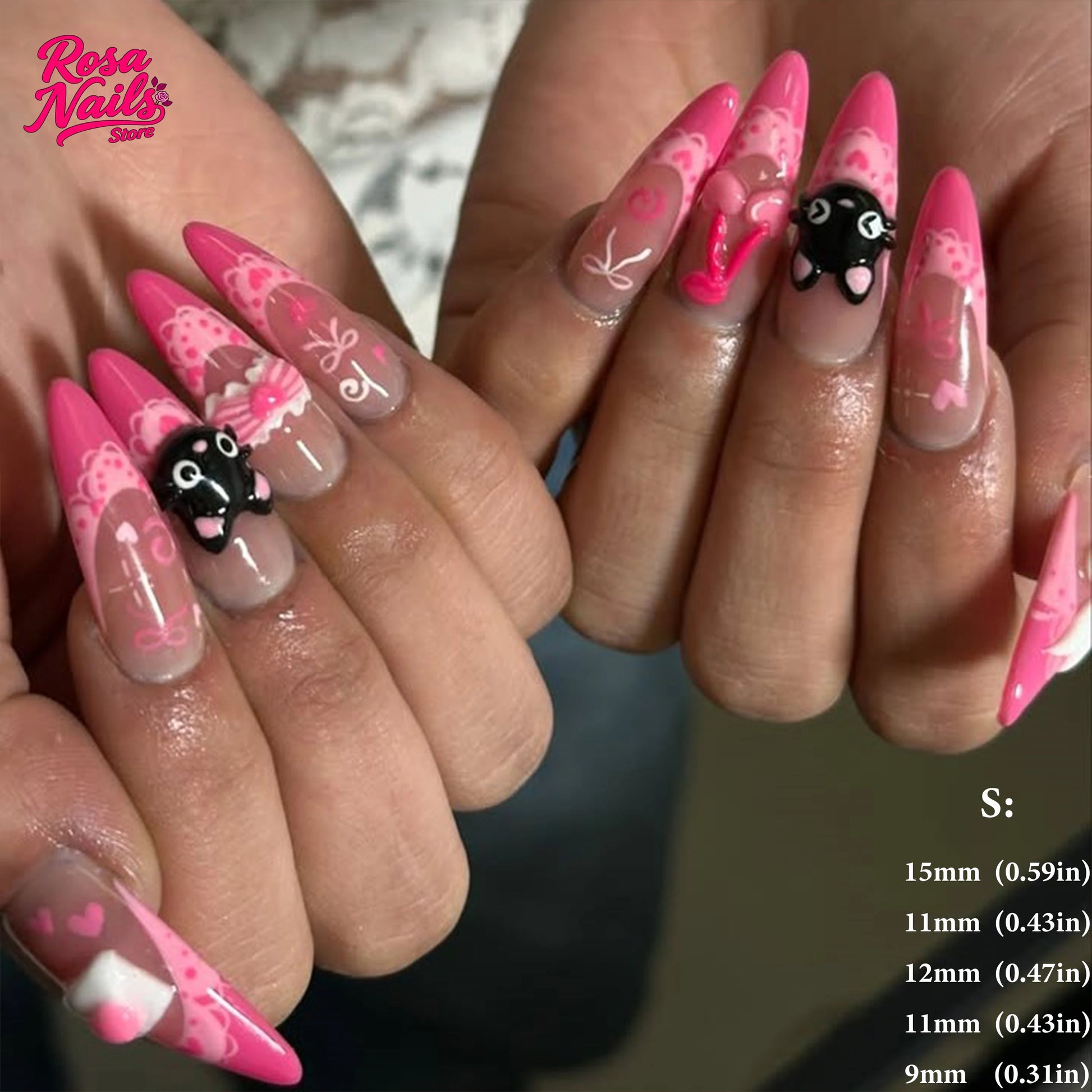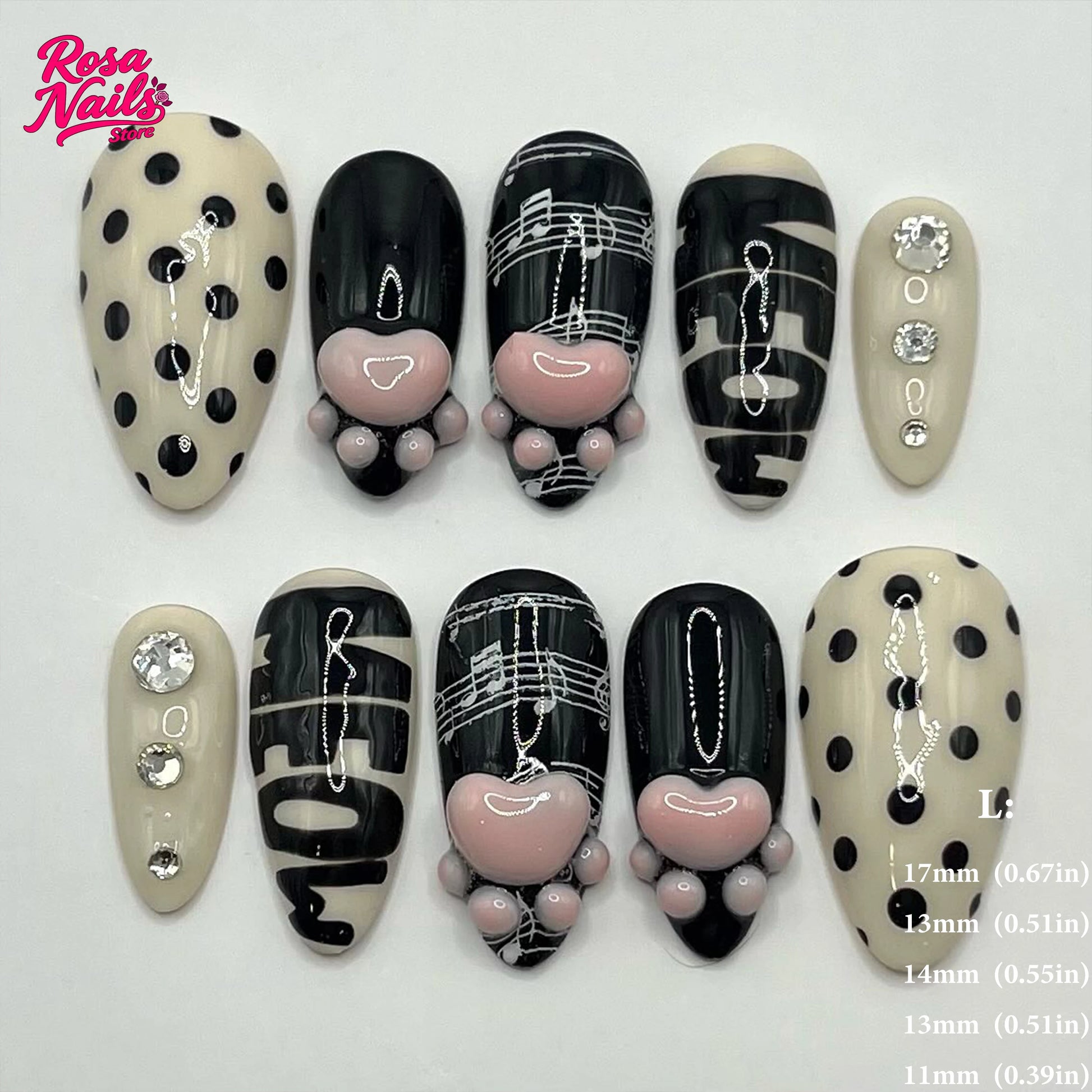 3D Polka Dots Nails | Press on Nails Handmade Kitties Nail Art | Hand Sculpted Long Coffin