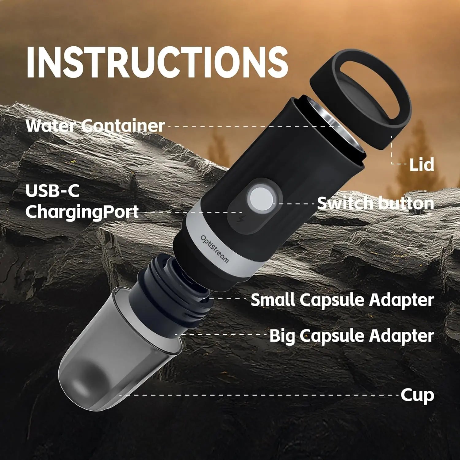 Easy to carry and charge:Bivisty Portable coffee machine designed for outdoor enthusiasts, the size of a regular water bottle, weighs 1.4 pounds, it will be fully charged in 2.5 hours with a quick-charge adapter, and is compatible with an in-car charger, so you can enjoy a hot cup of coffee anytime, anywhere.