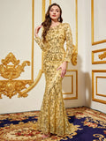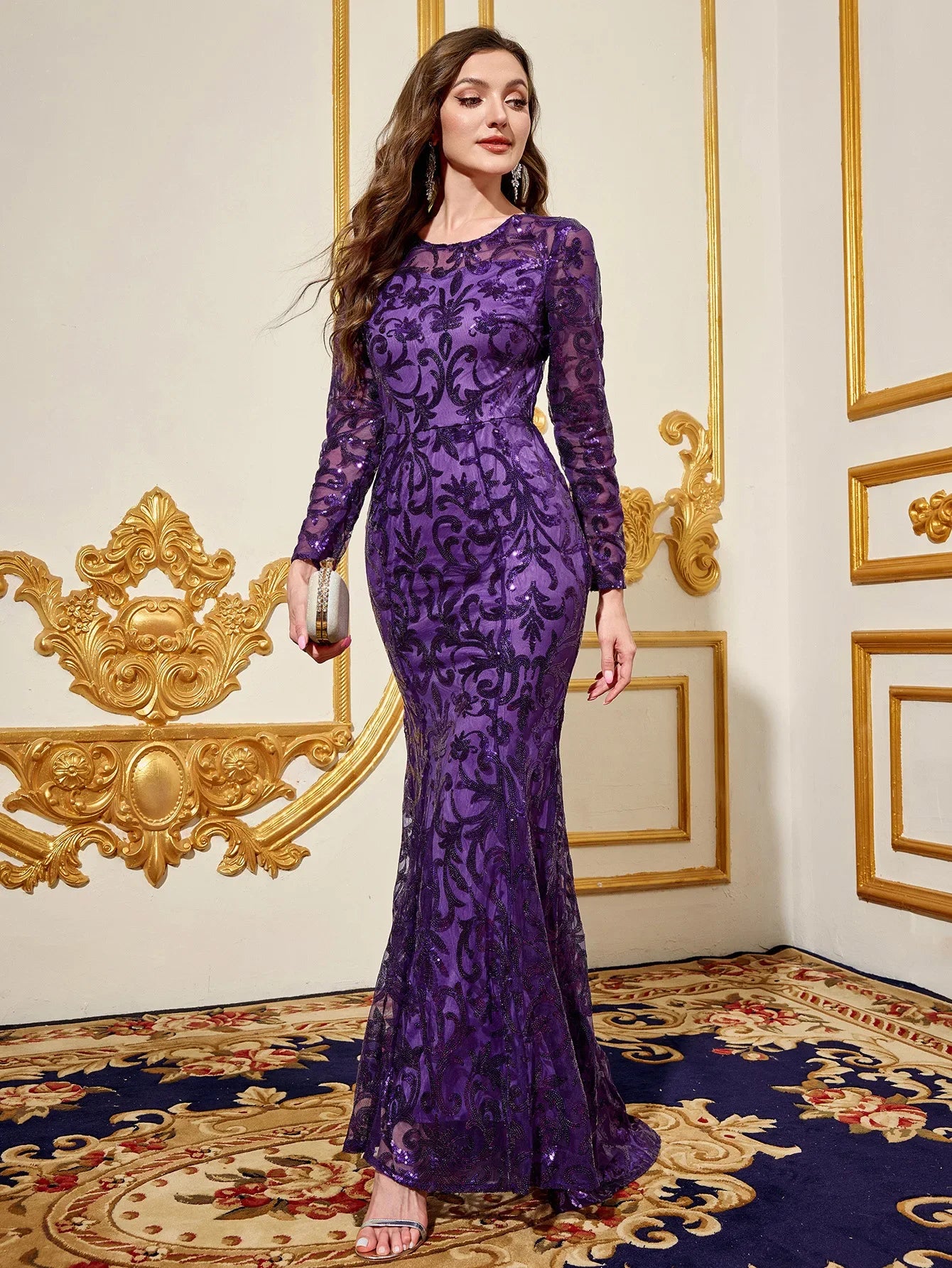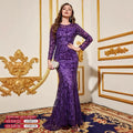Prom Dresses Full Sleeve | Purple Round Neck Long Evening Dress | Long Sleeved Dress