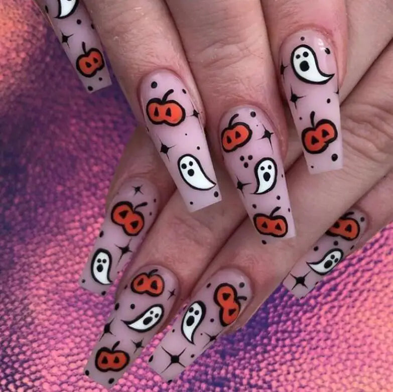 24 Pumpkin Press On Nails | Halloween False Nails Personalized Spider Pumpkin Fake Nail