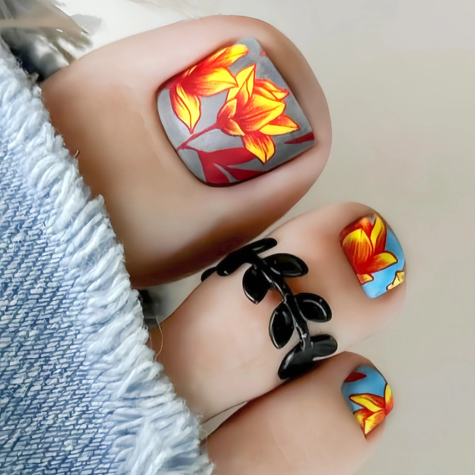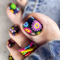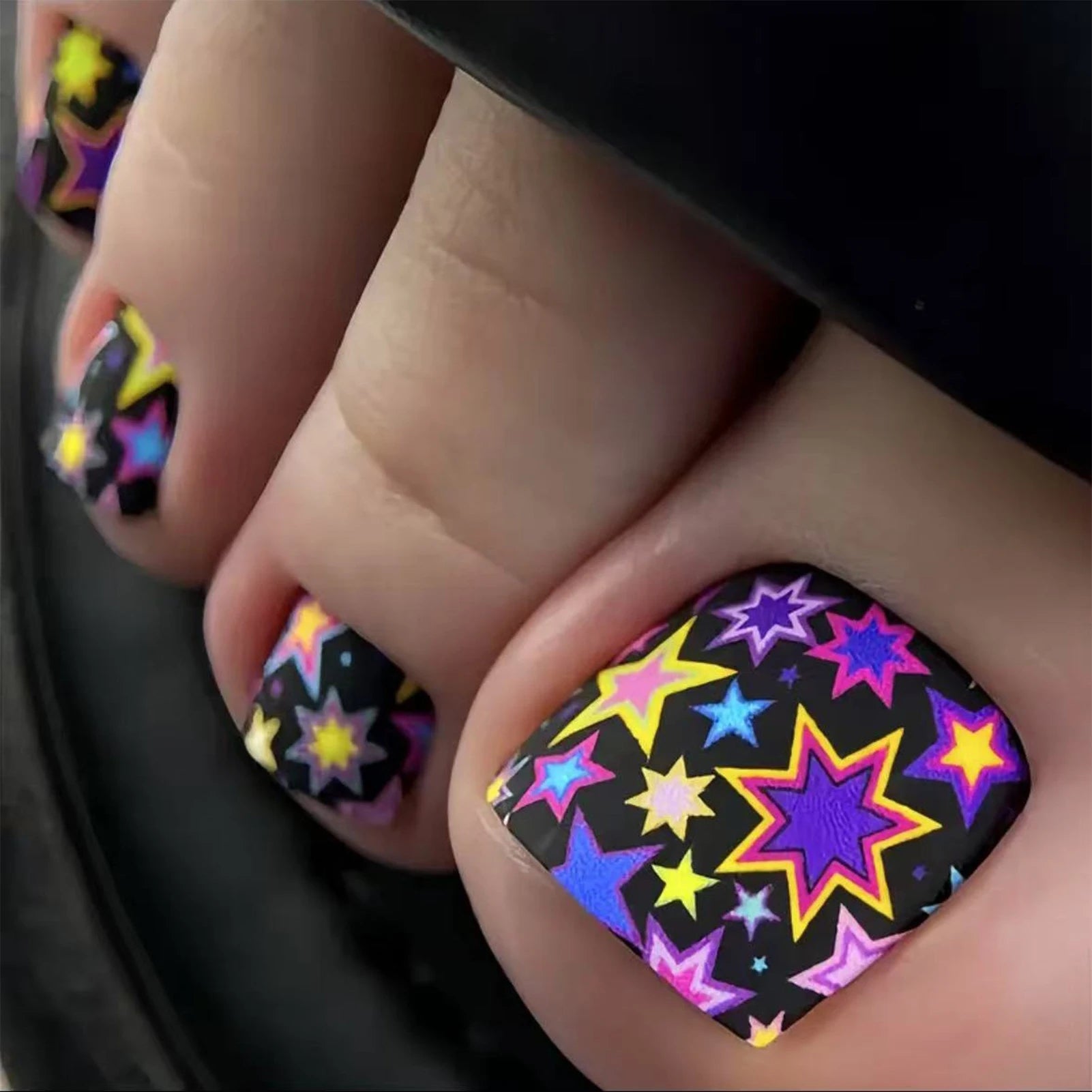 24 Purple Toenails with Designs Summer Short Square | Press On Nails