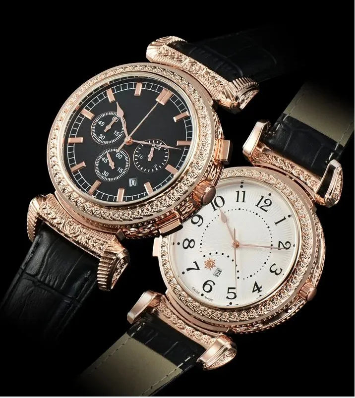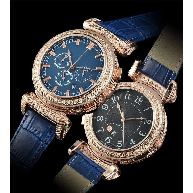 2025 Luxury Brand Multifunctional Chronograph Quartz Watches For Couple | Waterproof Leather Strap Watch