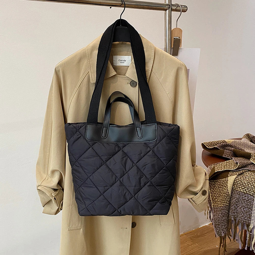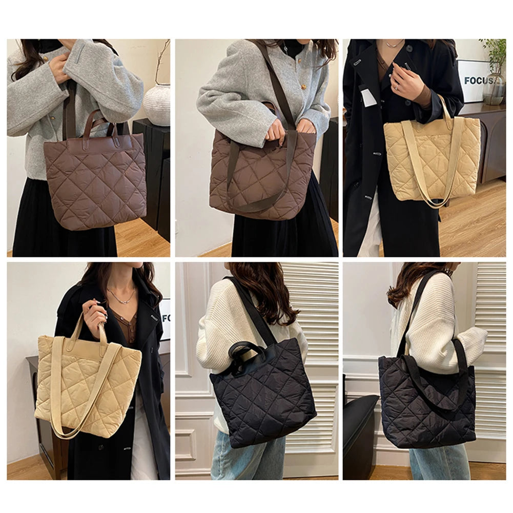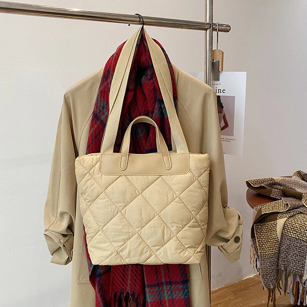 Quilted Puffer Tote Bag | Solid Color Large Purse Satchel Bag for Travel